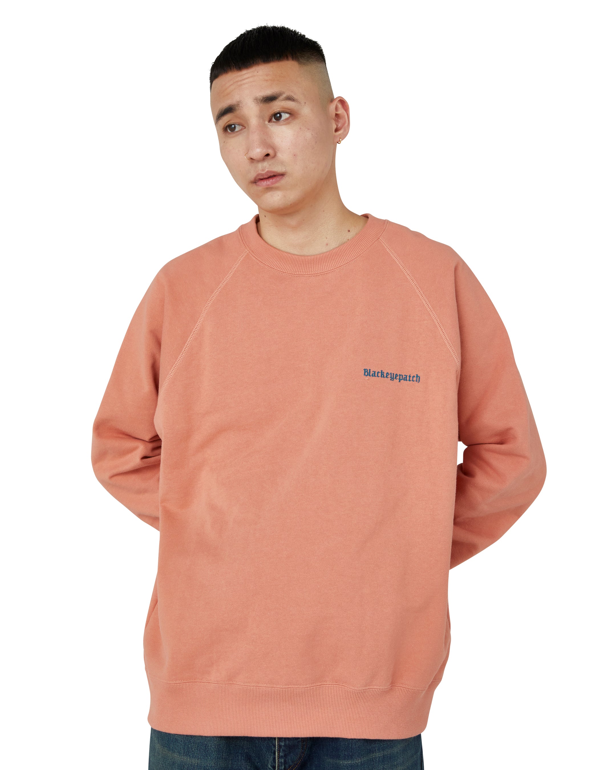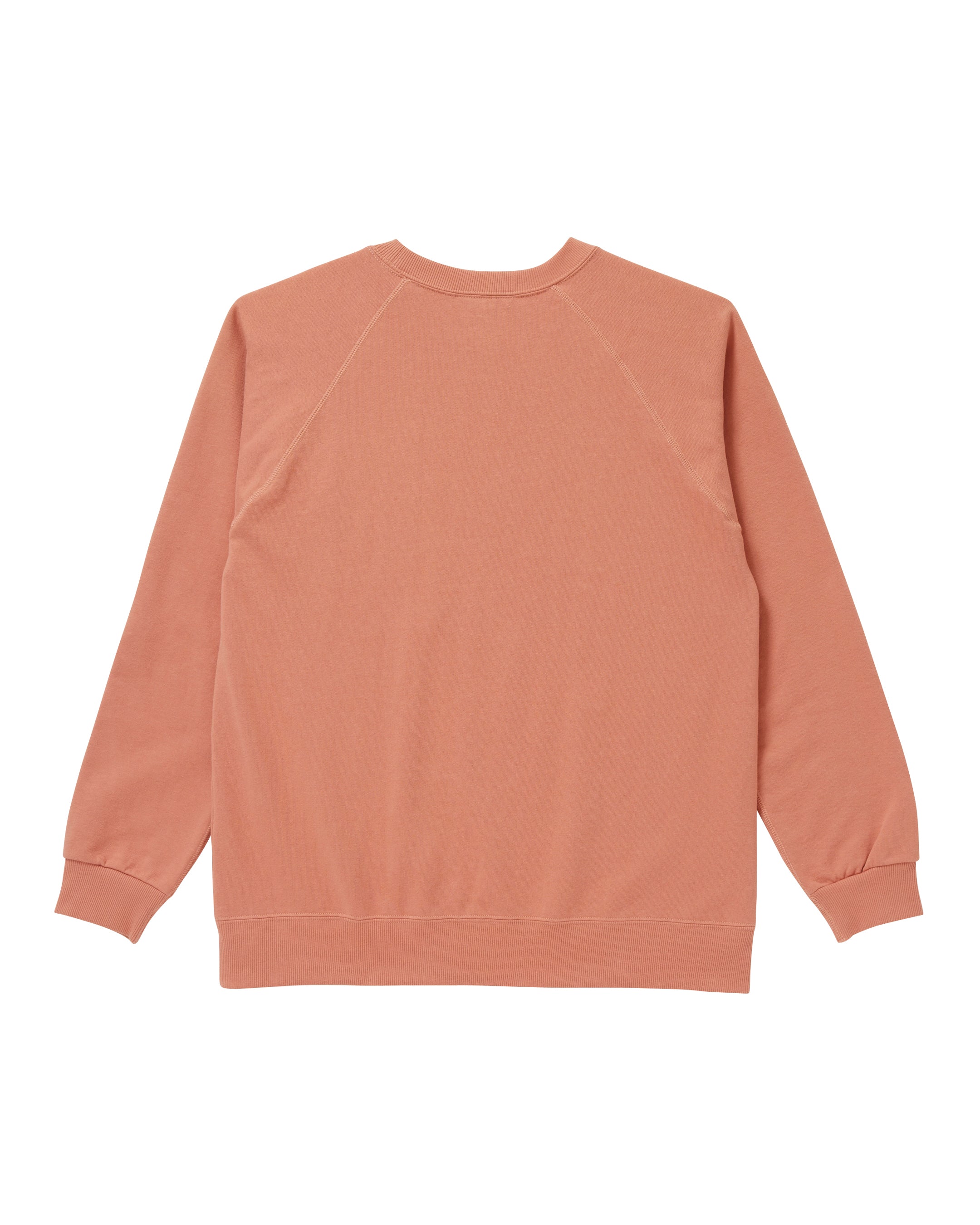 左胸にブランドネームを小さく刺繍で施したクルーネックスウェット。