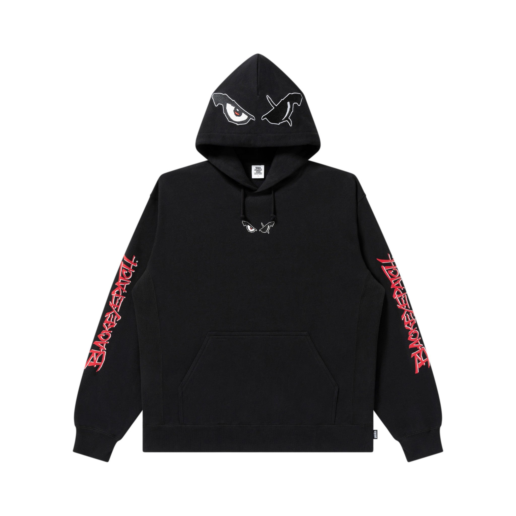 UK の音楽シーンとの親和性があるマイナーリーグ・ベースボールチームキャップから着想を得て BEP 流儀に表現した "EYE PATCH" グラフィックをフード部に刺繍で、フロントに小さくプリントしたプルオーバーフーディ。