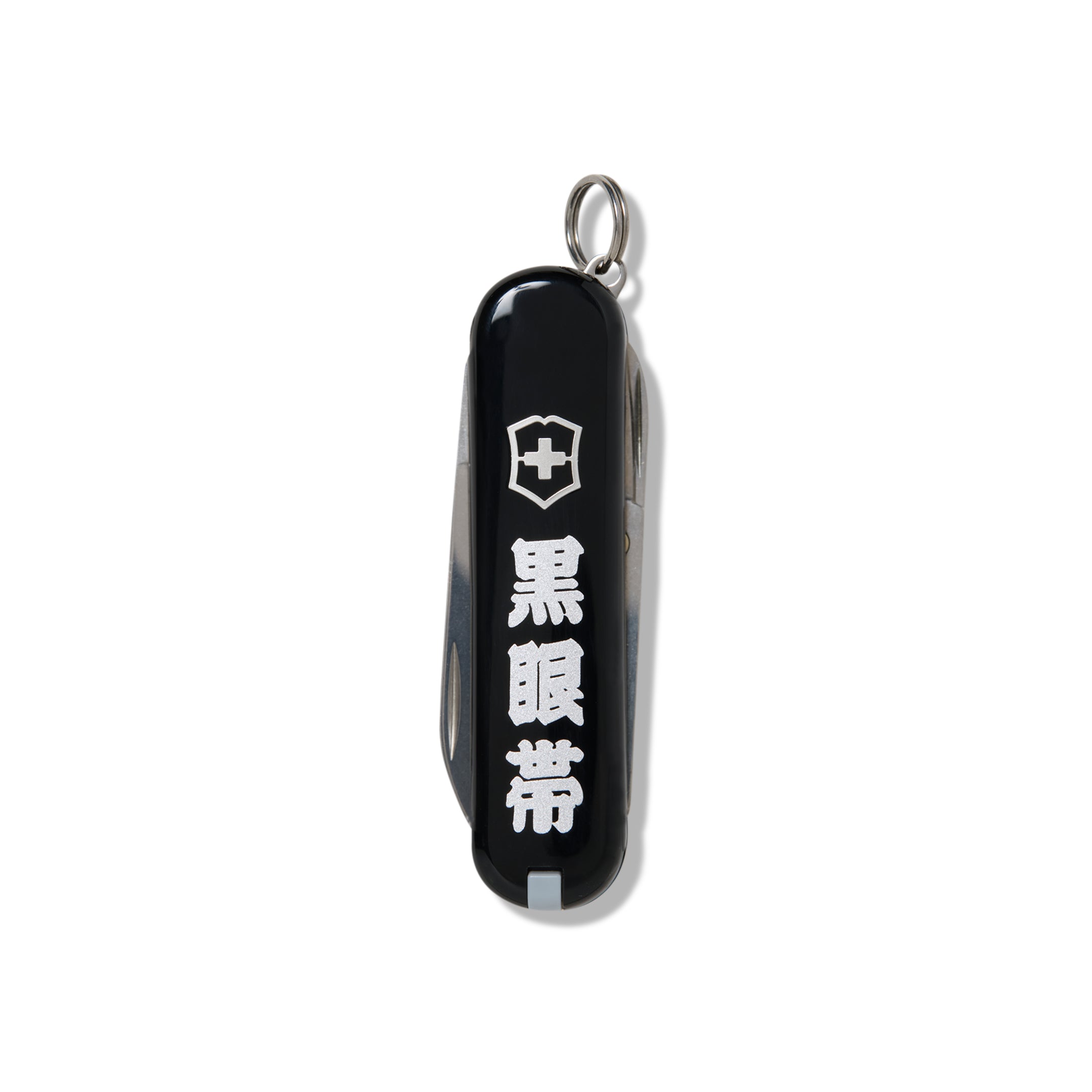 "黒眼帯" ロゴをプリントした Victorinox のマルチツール「クラシック SD」。