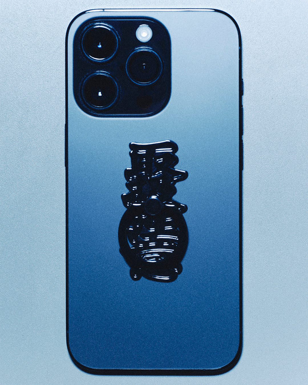 "取扱注意" のロゴを模ったスマートフォンリング。 スマホ本体やケースに貼り付けて使う仕様。 新色として艶感のあるブラックカラーが登場。