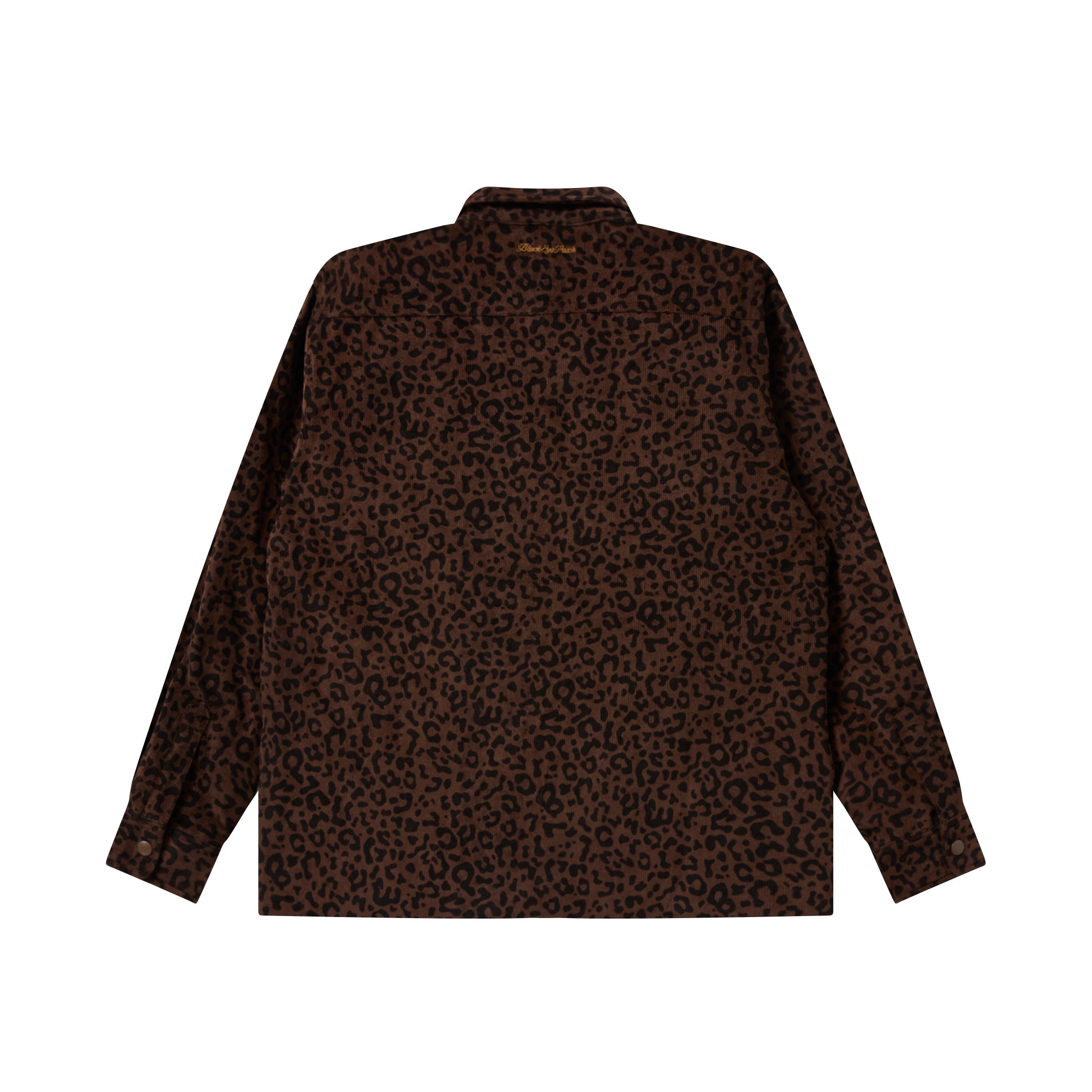 Quilted shirt jacket featuring an original leopard print. Leather patch on the front, quilted lining.