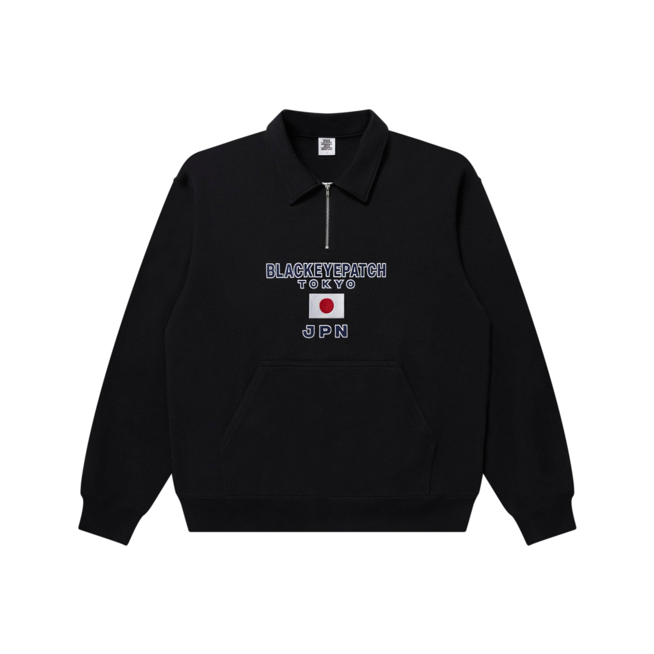JPN FLAG EMBROIDERED HALF ZIP SWEAT BLACK