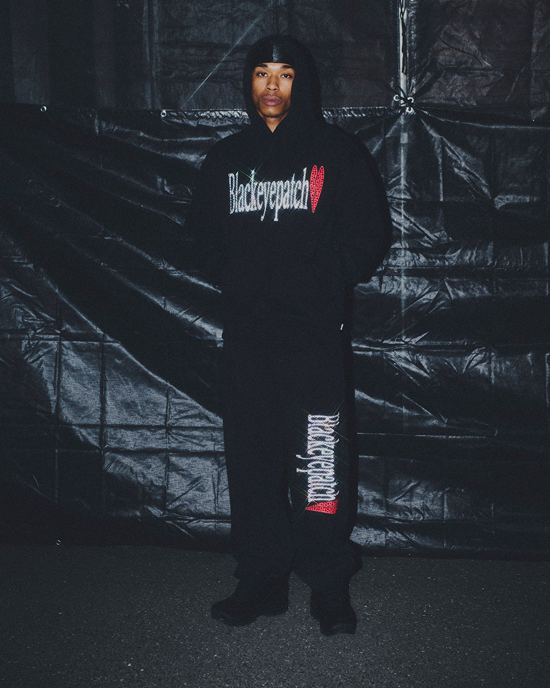 RHINESTONED HEARTBREAK LOGO SWEAT PANTS BLACK
