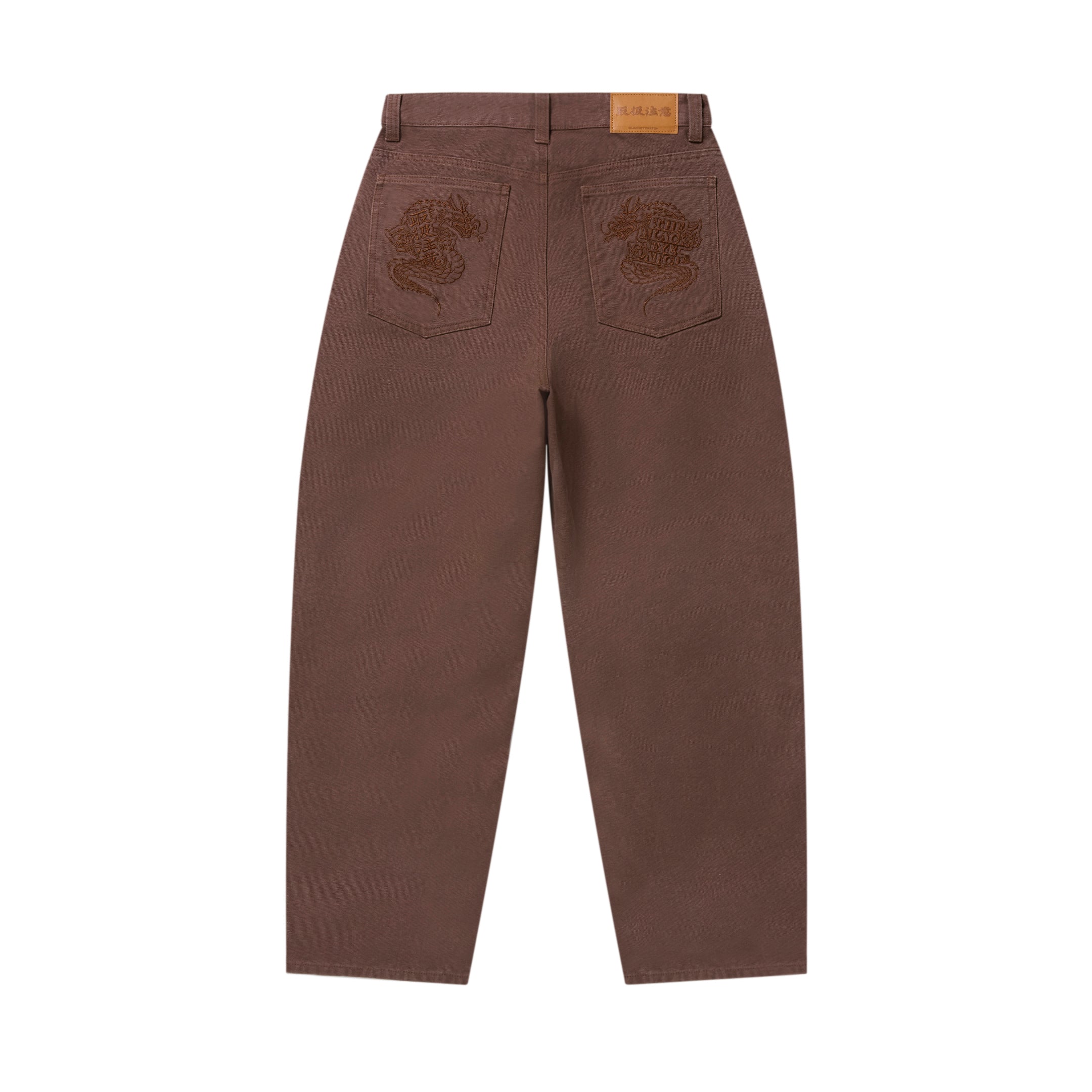 DRAGONS EMBROIDERED WASHED BAGGY PANTS BROWN