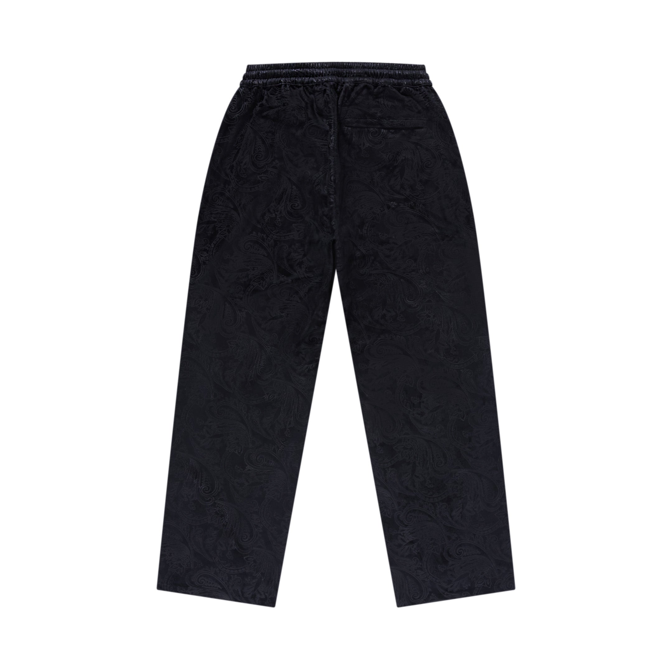 Track pants made from velour fabric featuring an embossed paisley pattern. Available as a set with matching design track jacket.