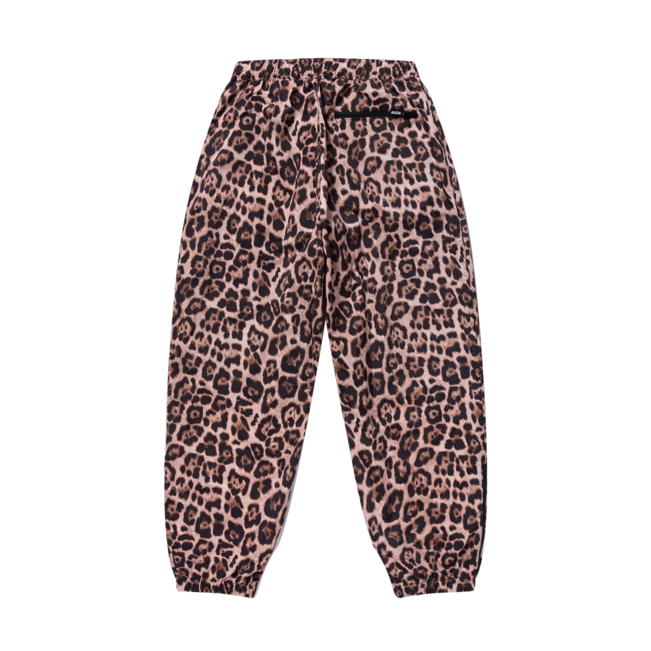 リップストップ生地にオリジナルのレオパード柄をプリントしたトラックパンツ。