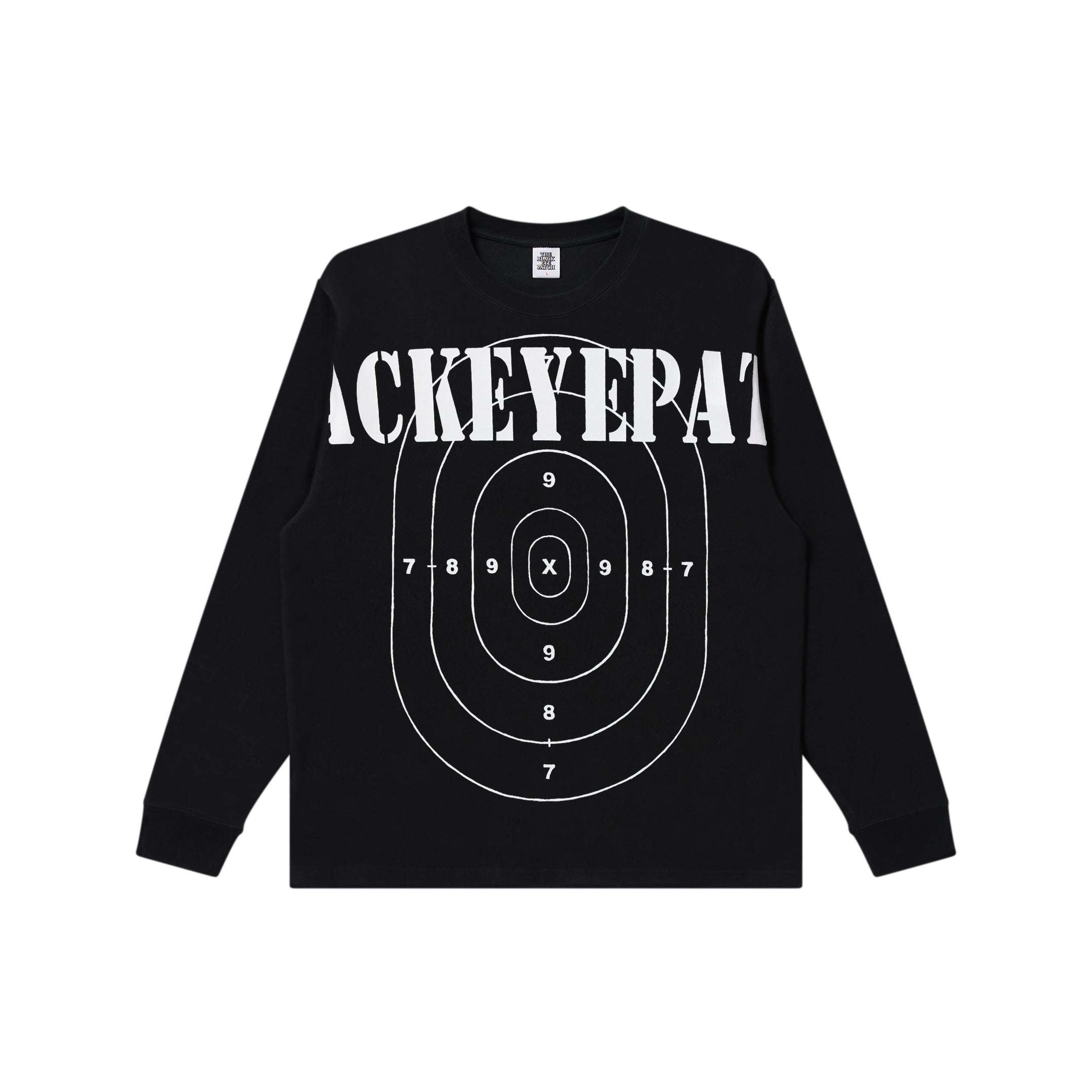 フロントには身頃から袖に跨る大きなブランドロゴとターゲットのグラフィックをプリントしたロングスリーブ T シャツ。