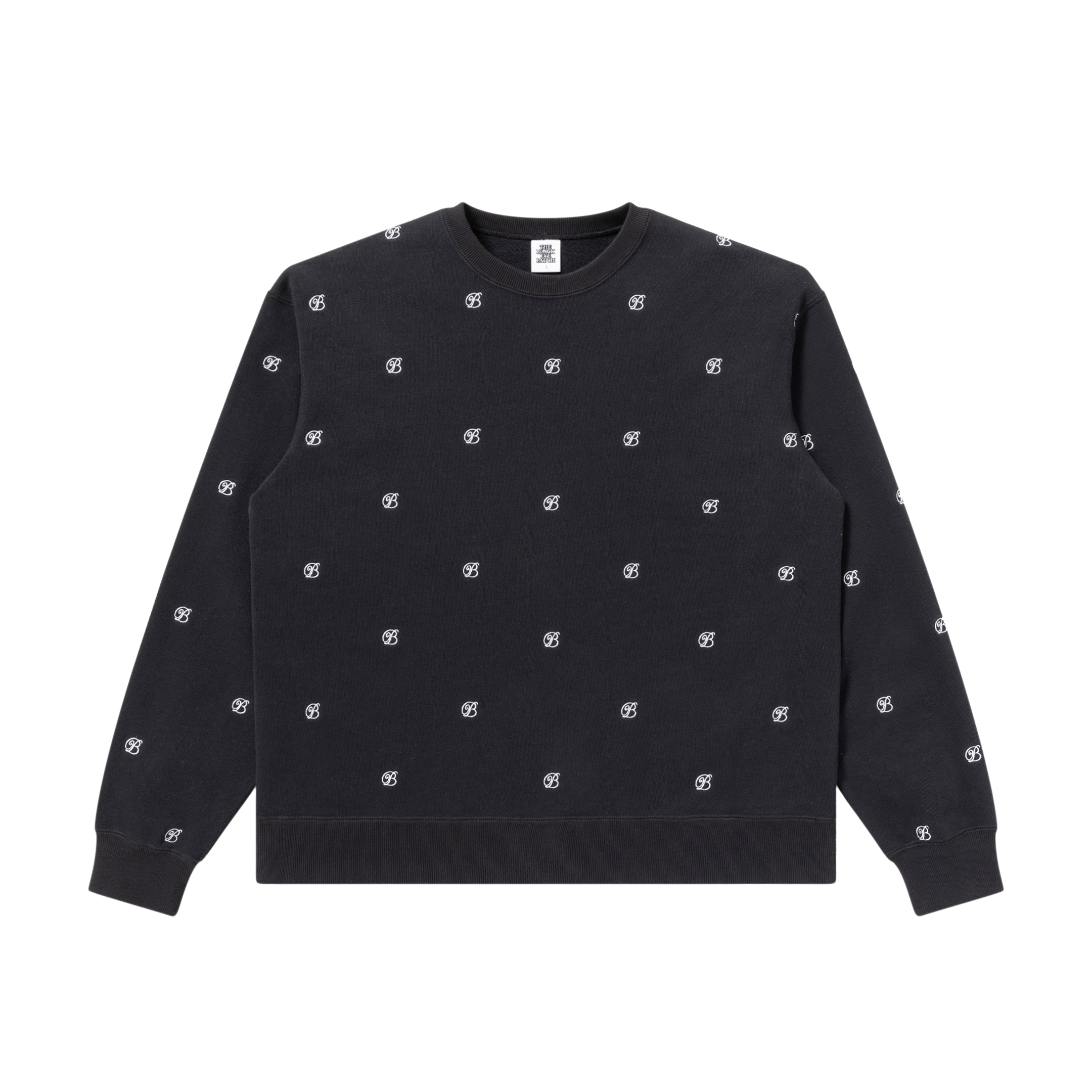 ボディ全面に "B EMBLEM" のロゴを小さく刺繍で施した総柄仕様に仕上げたクルーネックスウェット。