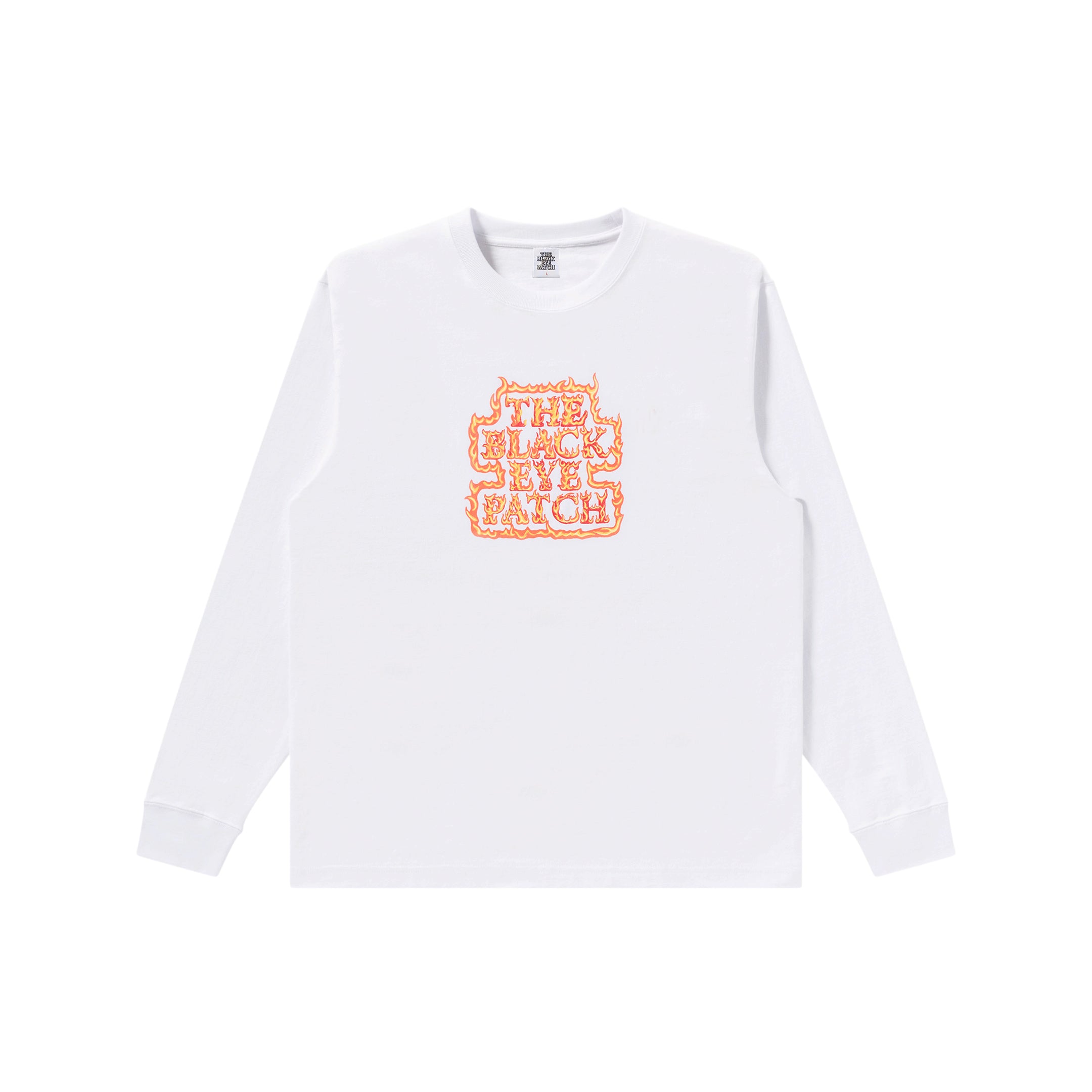 "OG LABEL" ロゴを炎で表現したグラフィックをプリントしたロングスリーブ T シャツ。