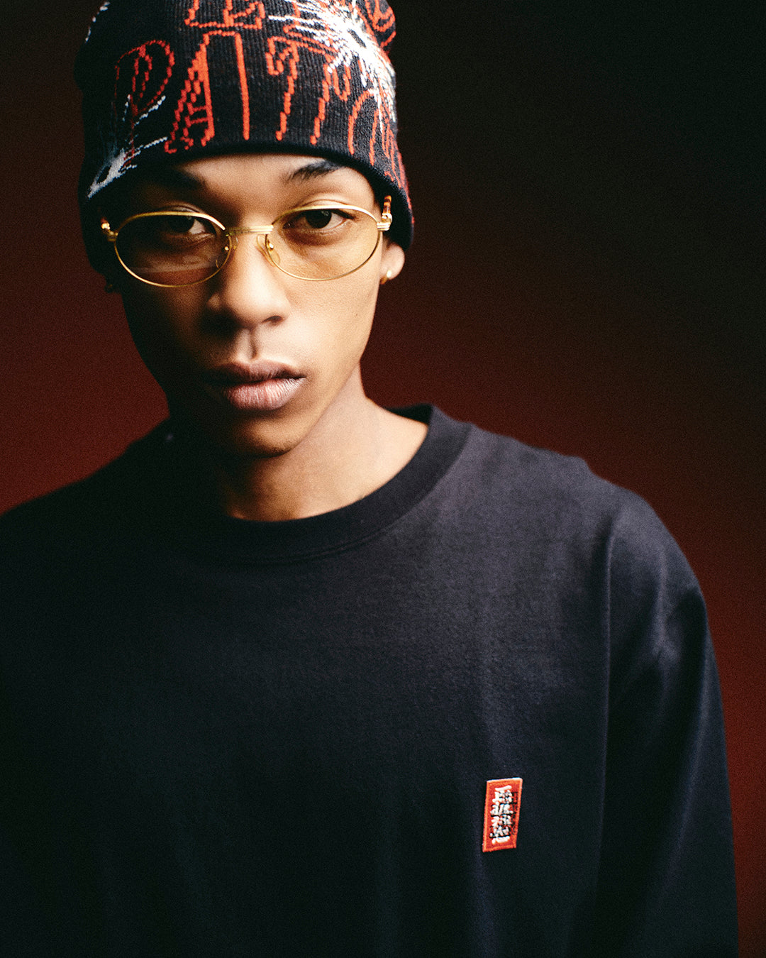 弾痕とアーミー調のブランドロゴをジャガードで表現したシングルビーニー。