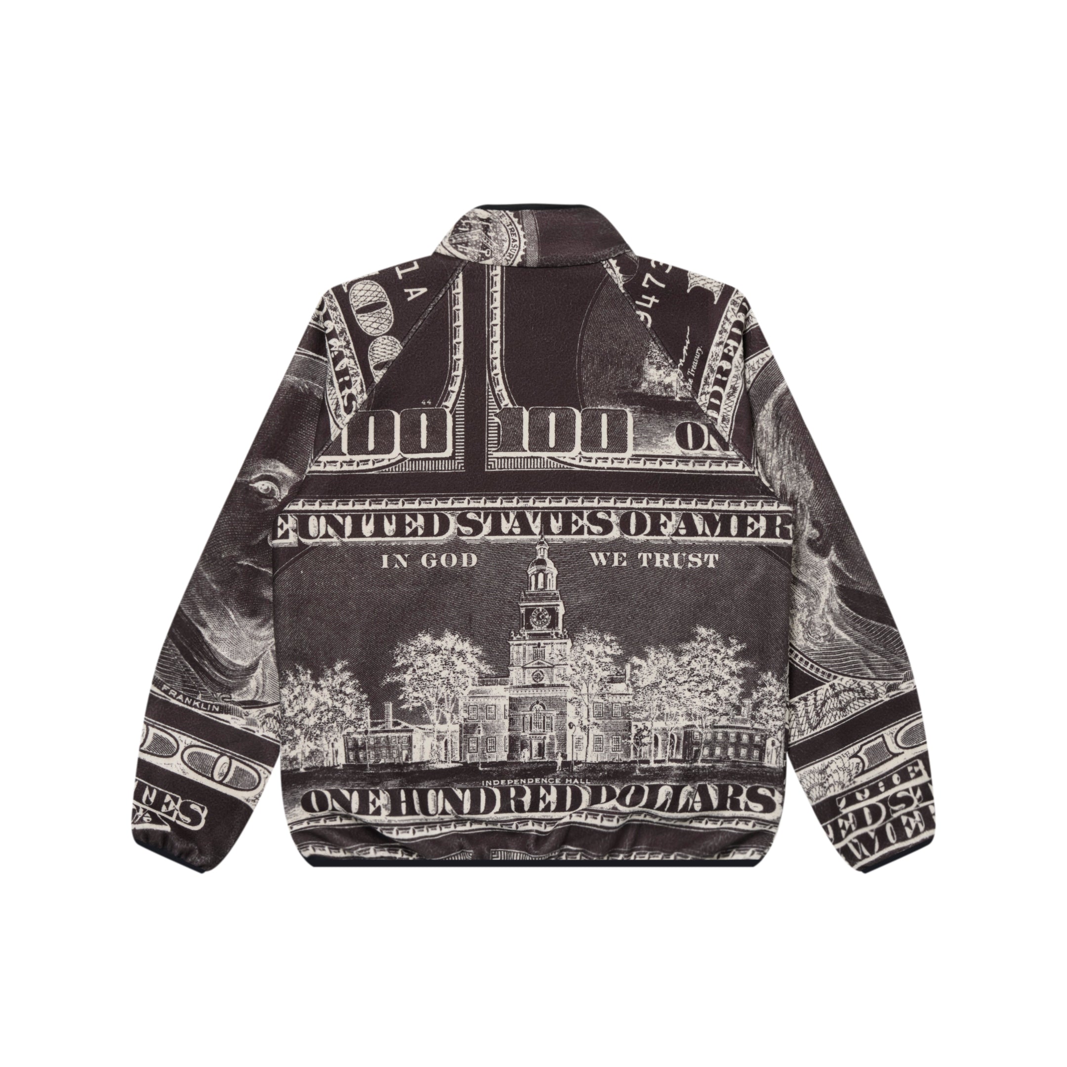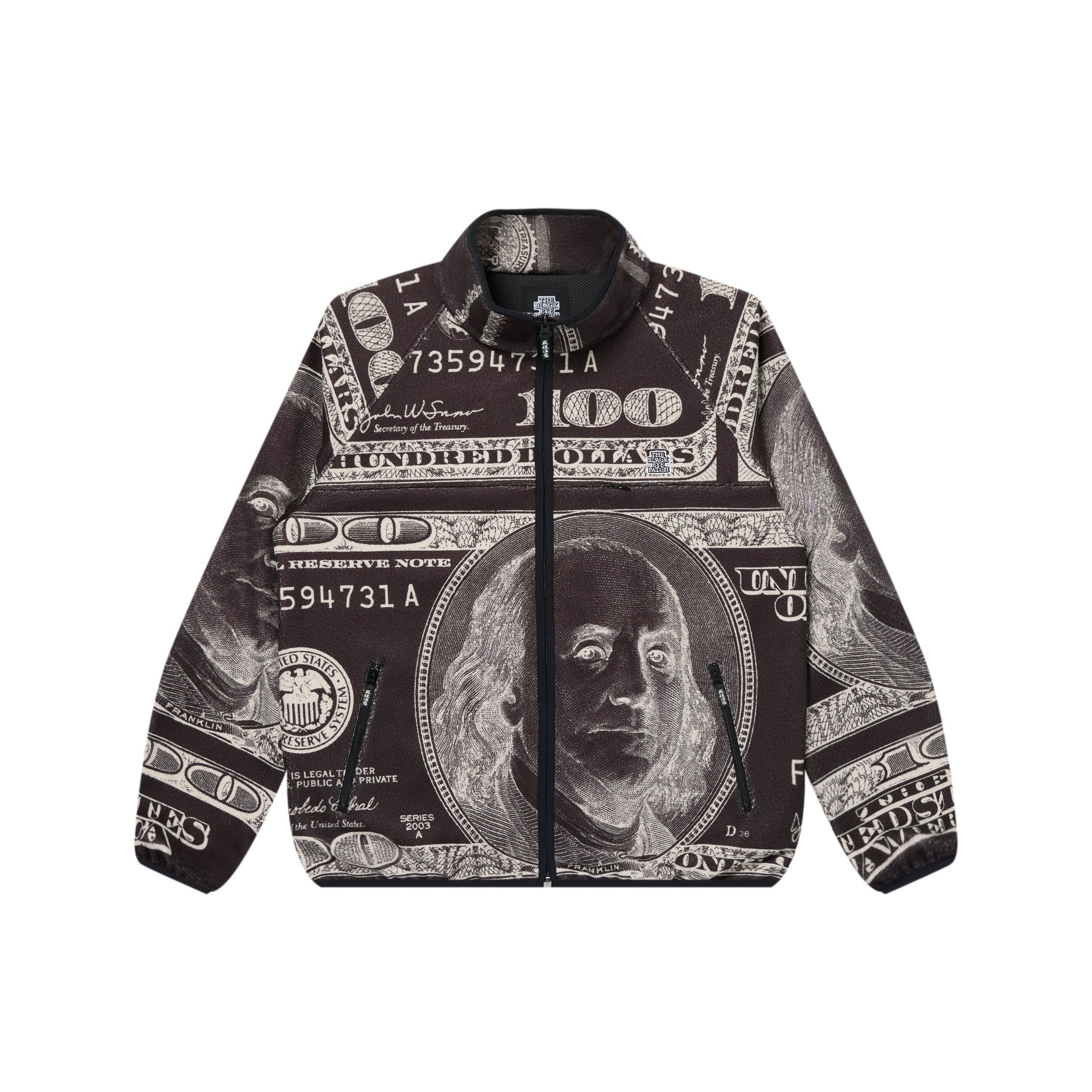 マイクロフリースに 100 ドル札を全面に総柄プリントしたジャケット。