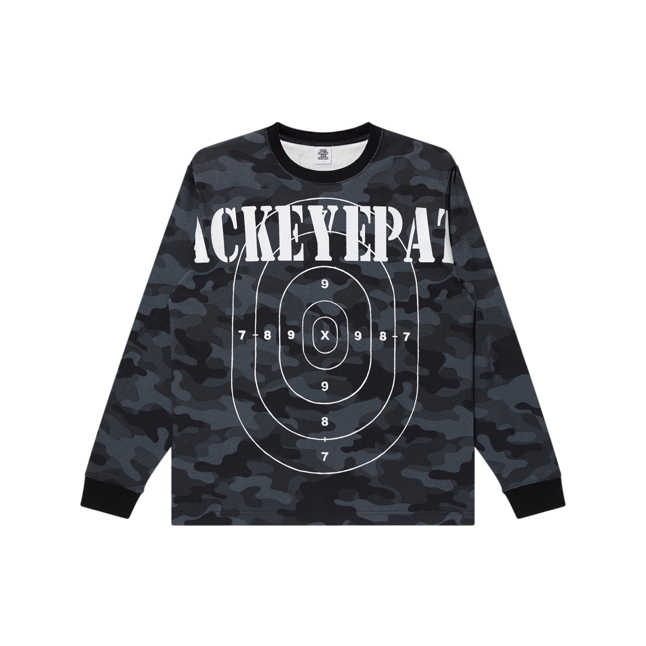 フロントには身頃から袖に跨る大きなブランドロゴとターゲットのグラフィックをプリントしたロングスリーブ T シャツ。