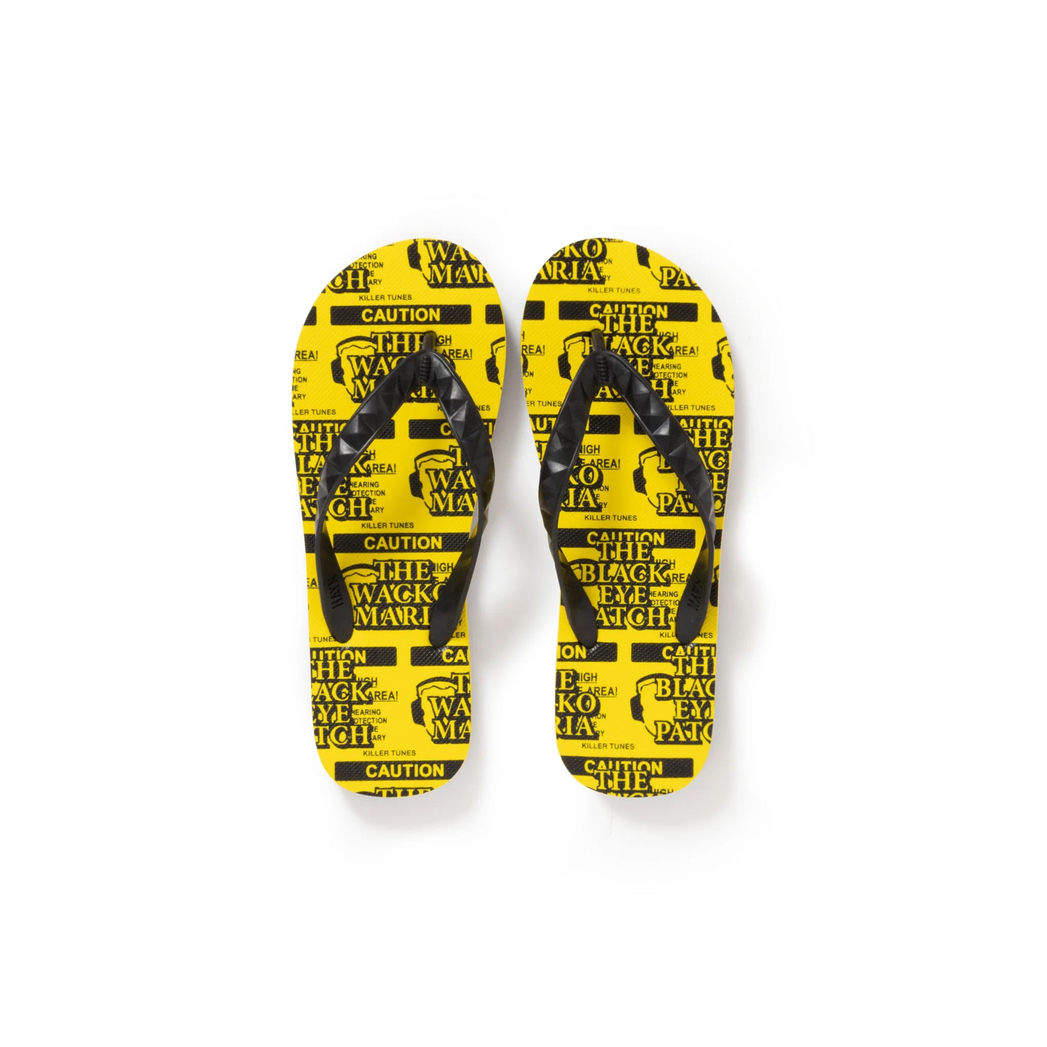These are HYAN beach sandals, featuring the OG LABEL logo and WACKO MARIA logo in LABEL design specifications.