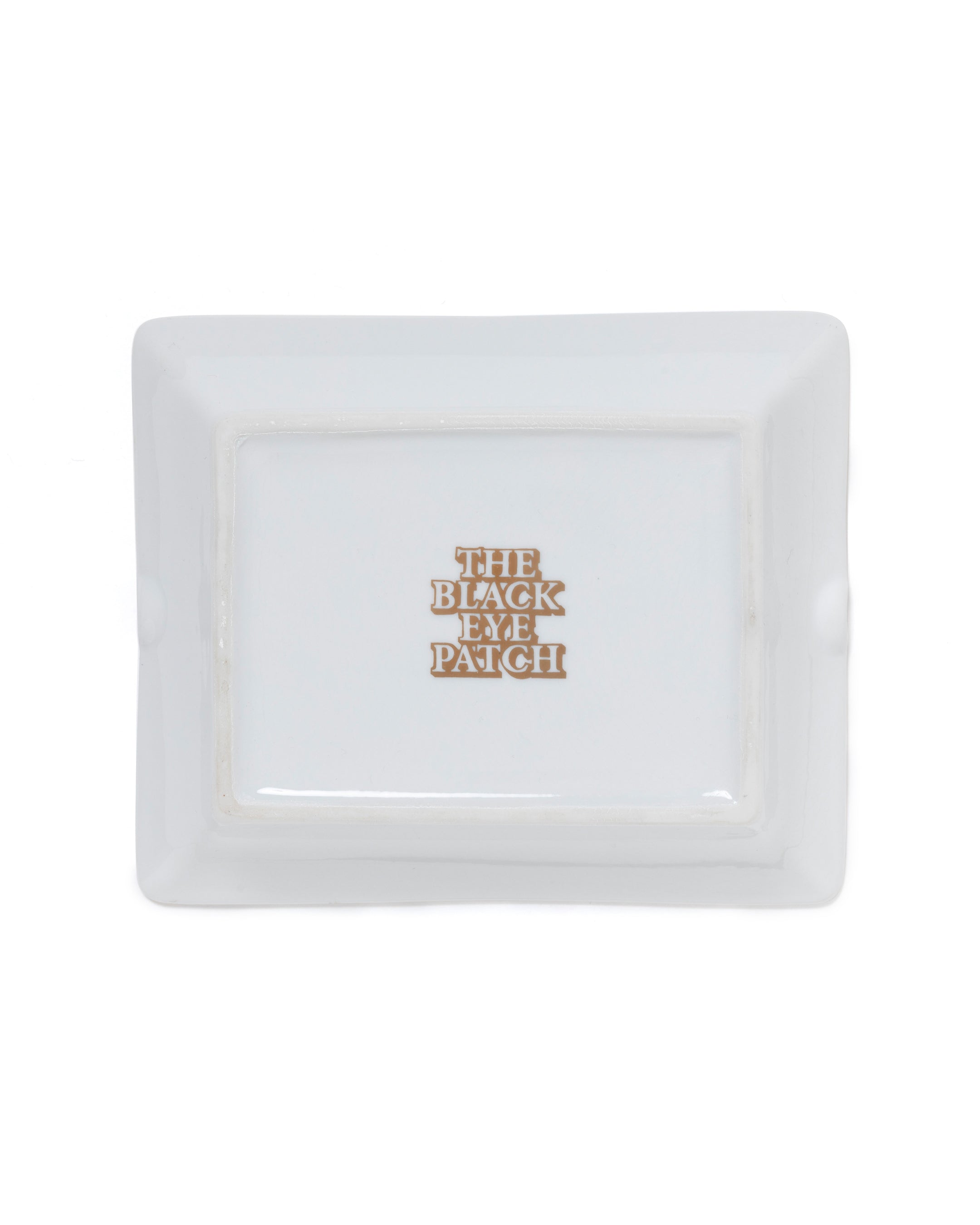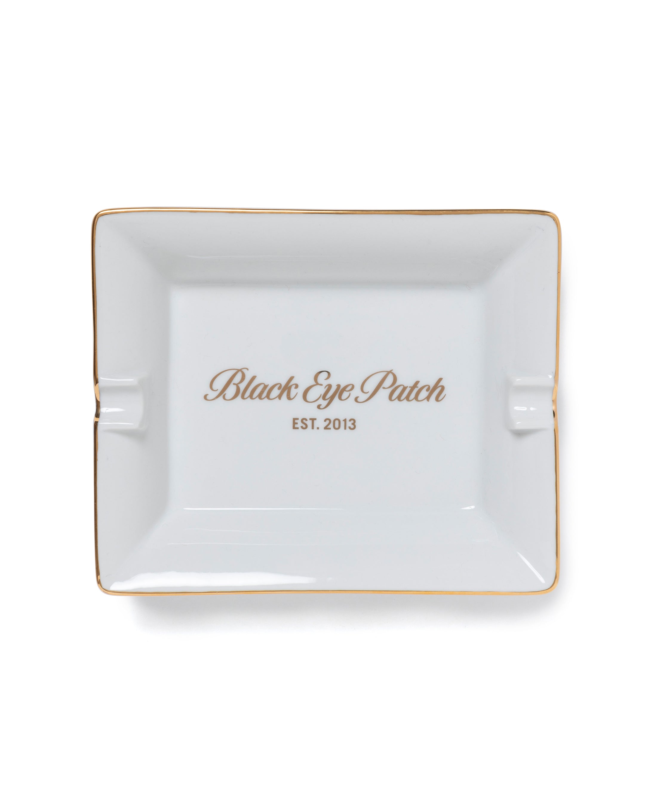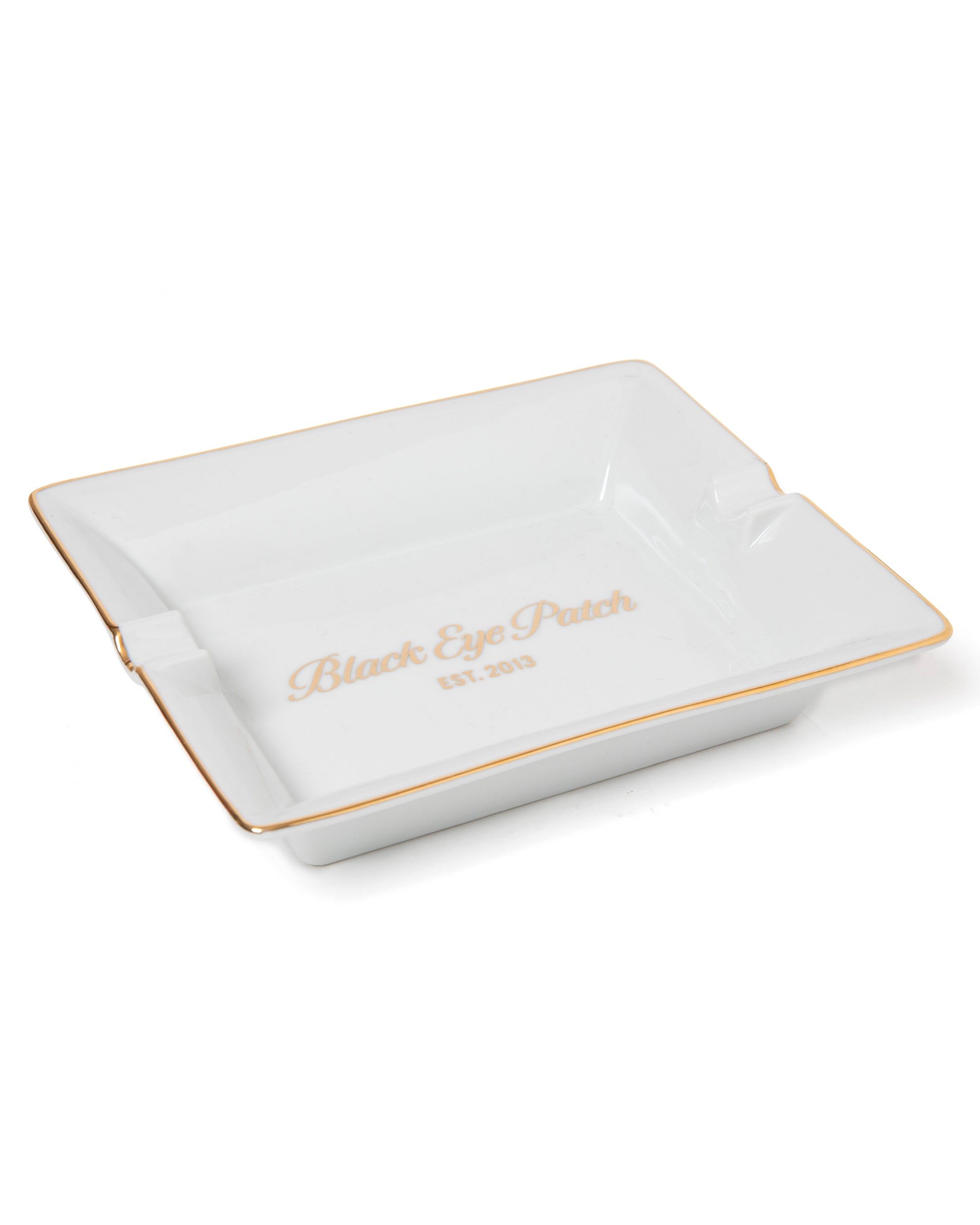 A luxurious, large-sized ashtray featuring a white background with gold ROYAL SCRIPT logo and lines.
