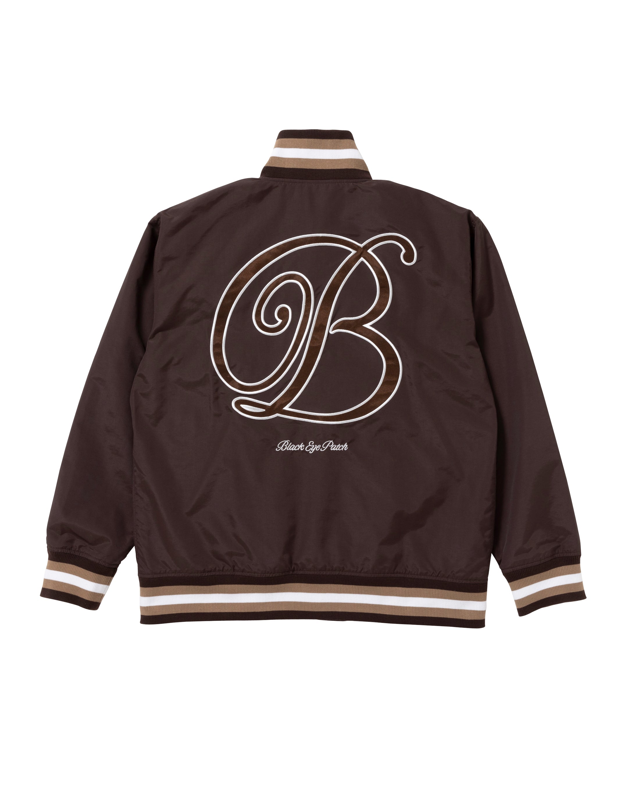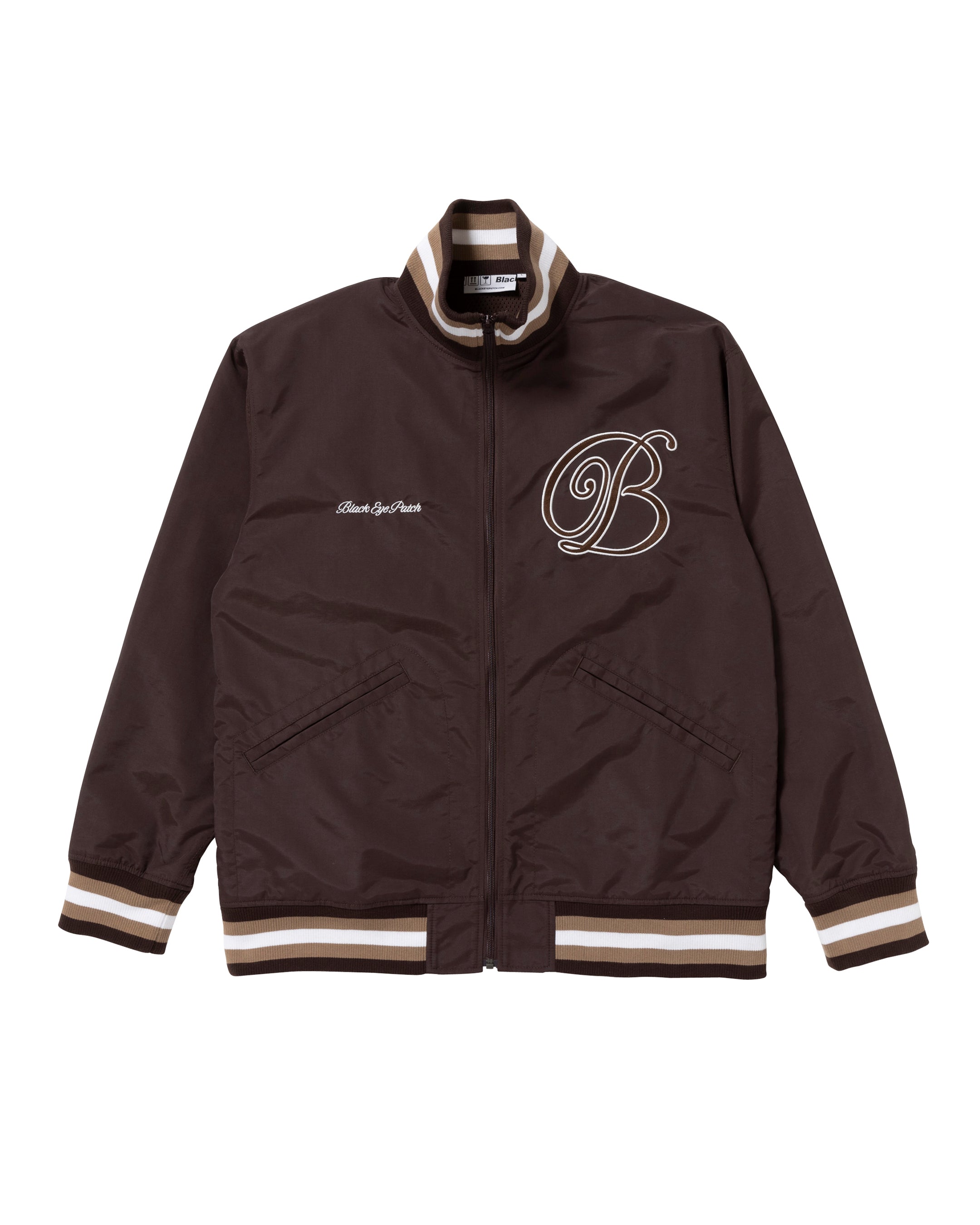 This is a classic-style nylon track jacket featuring embroidered "B" emblem logos on the front chest and back.