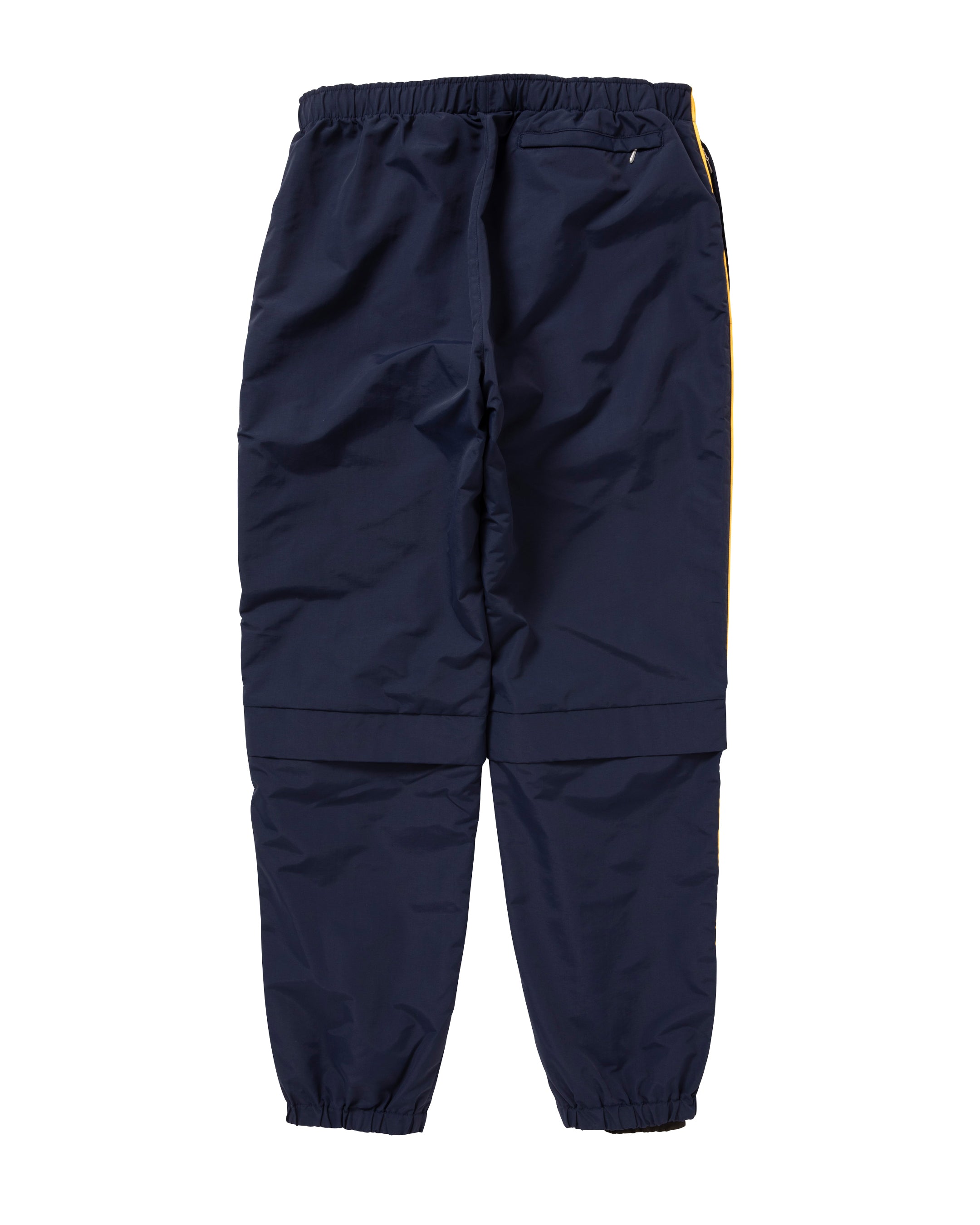 These nylon track pants feature 90's-inspired, tech-wear details and a rubber patch with the BEEZ-EYE-P graphic, representing "BlackEyePatch."
