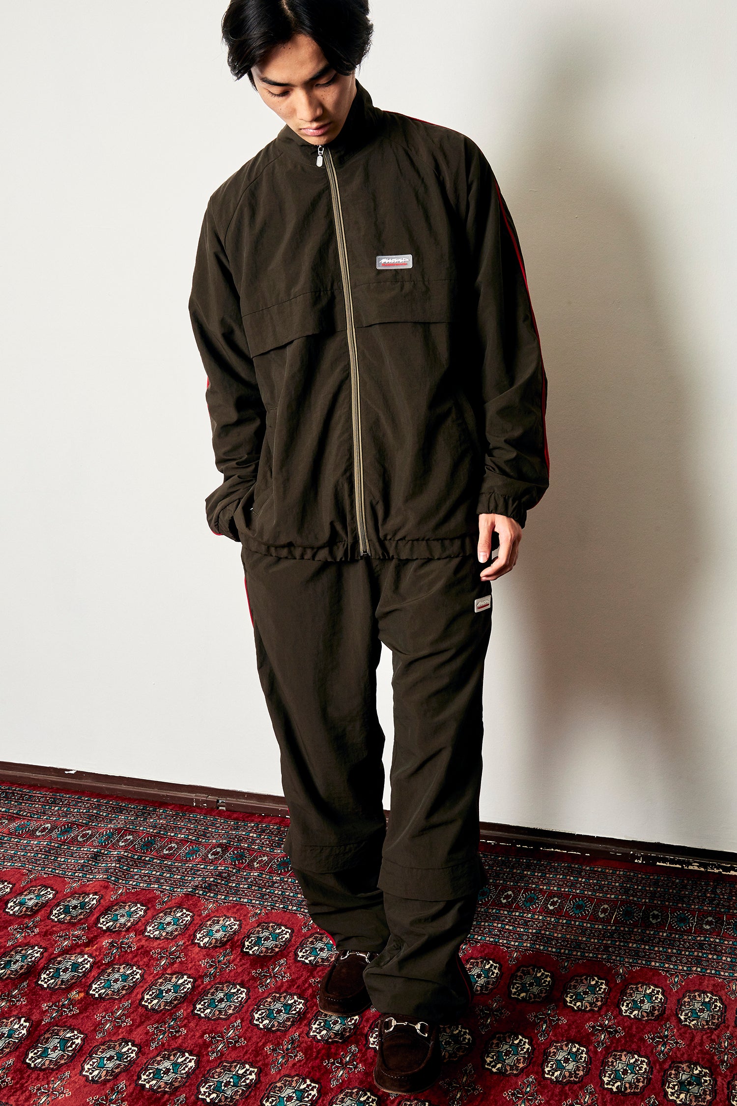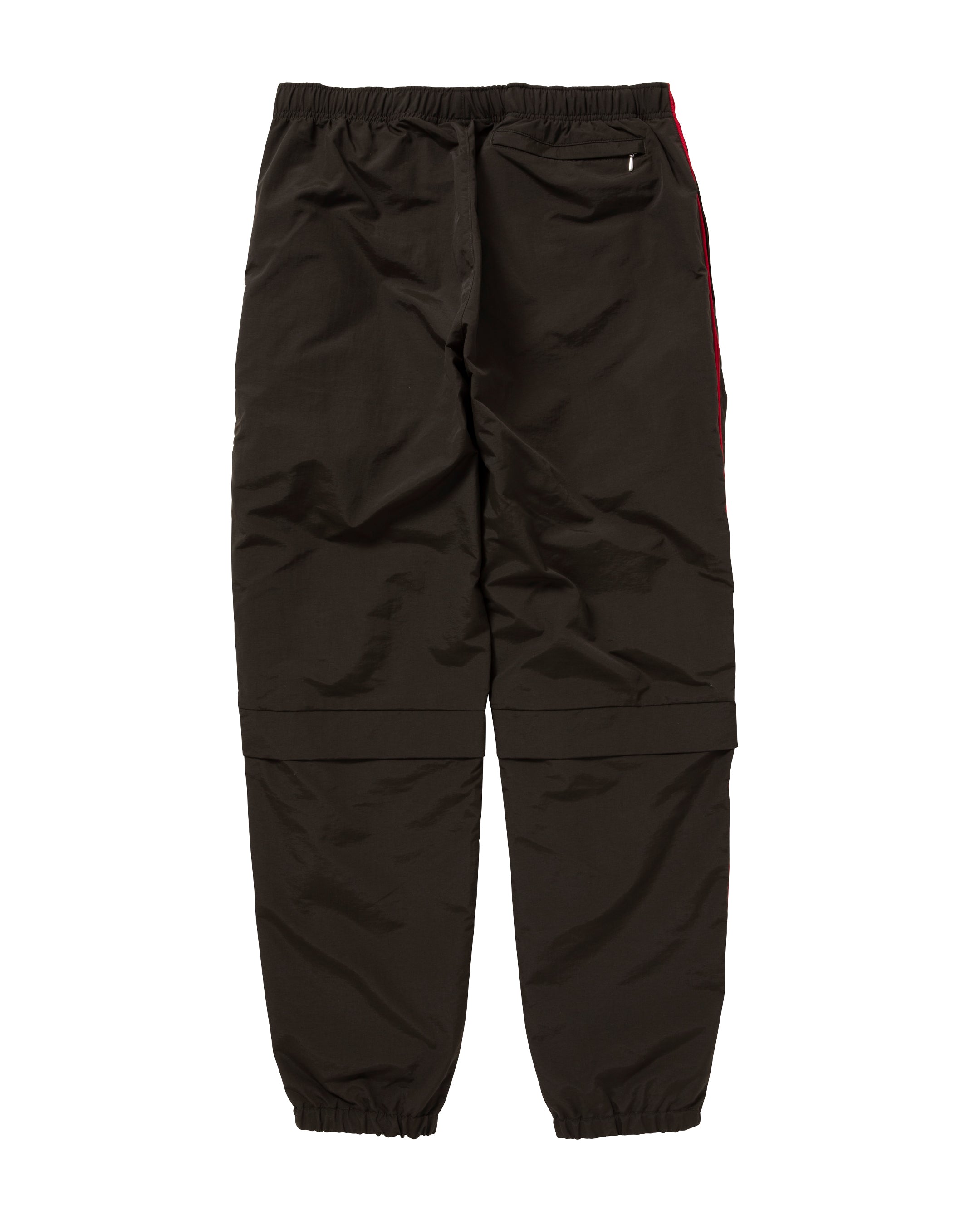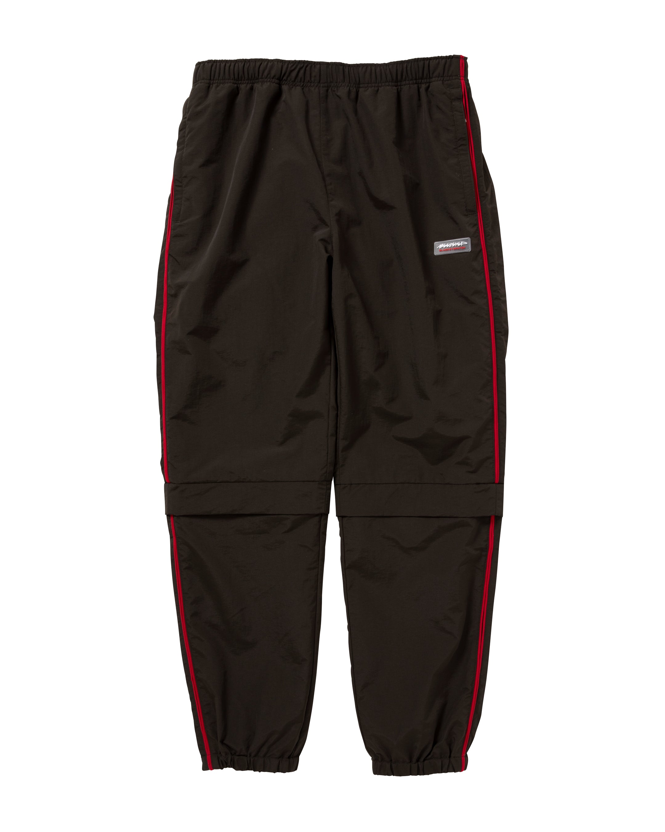 These nylon track pants feature 90's-inspired, tech-wear details and a rubber patch with the BEEZ-EYE-P graphic, representing "BlackEyePatch."