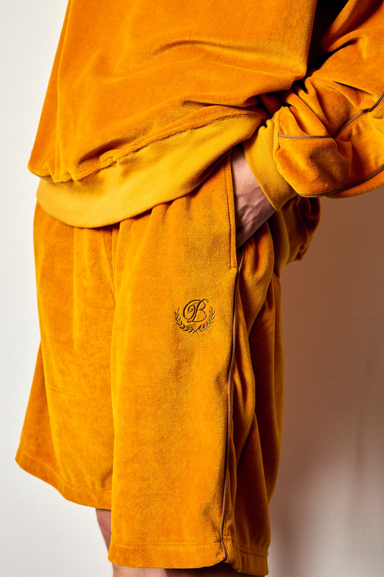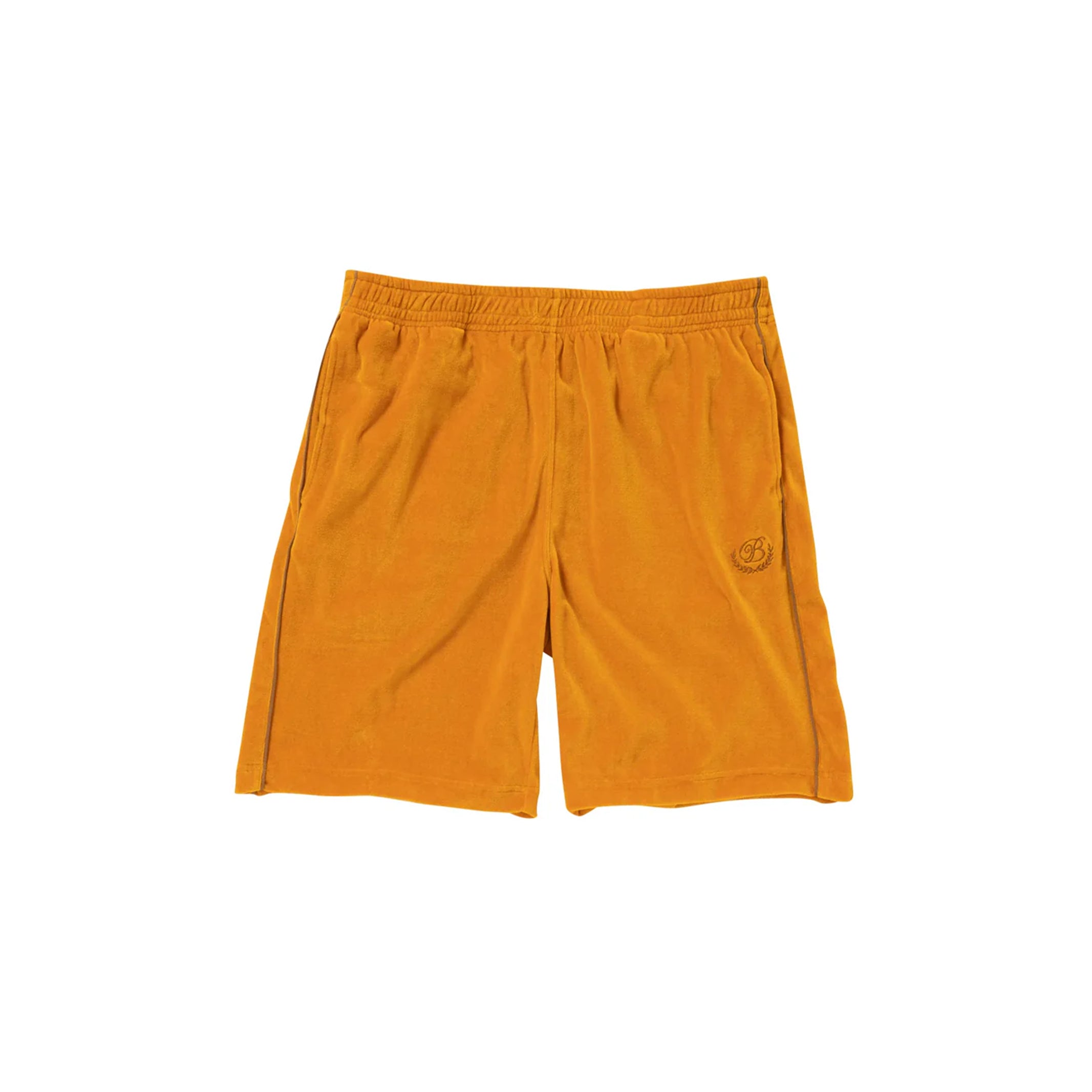 These are easy-style velour shorts with the "B" emblem logo embroidered in the same color on the front.
