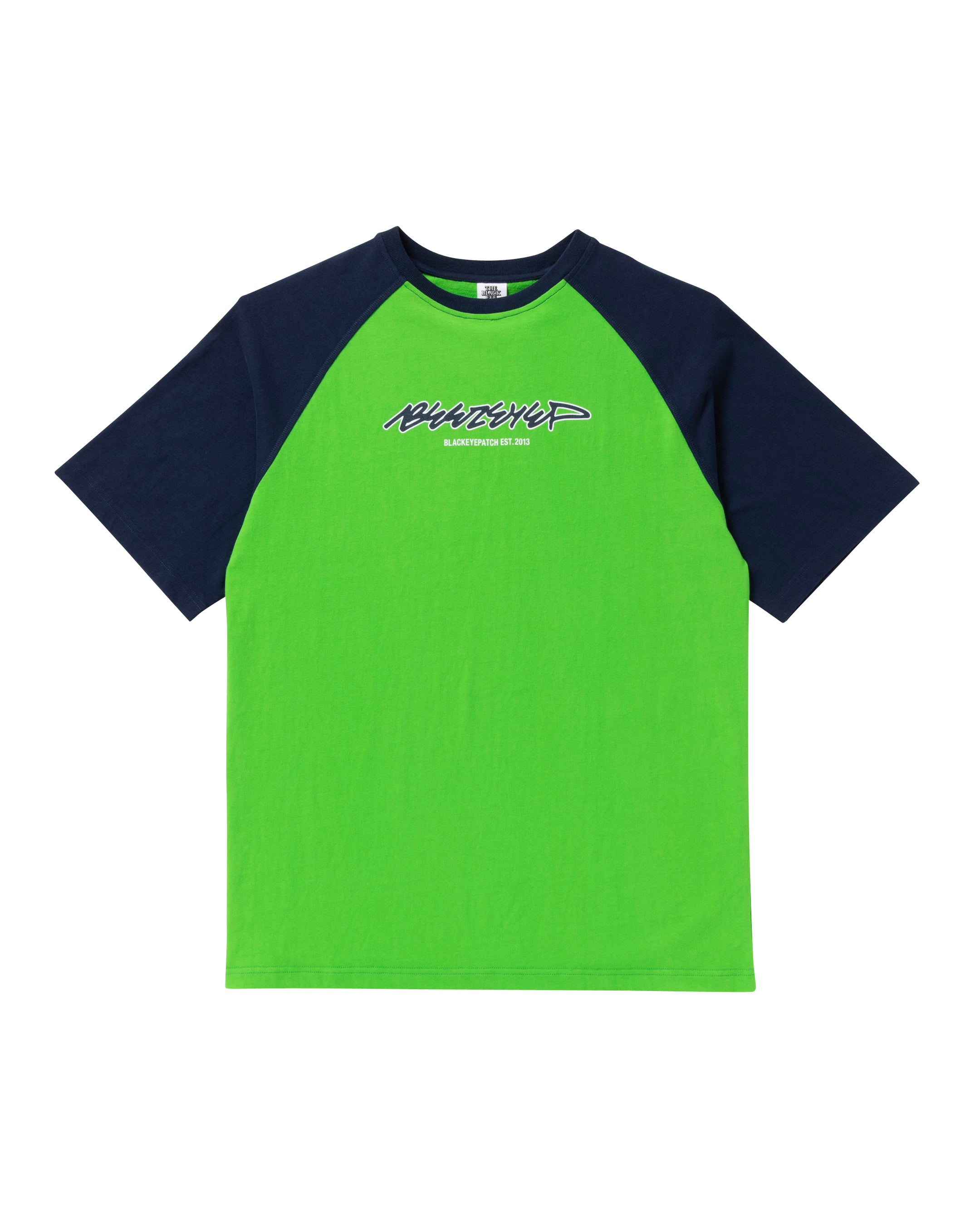 BEEZ-EYE-P Script Logo Raglan Tee, Navy / Green