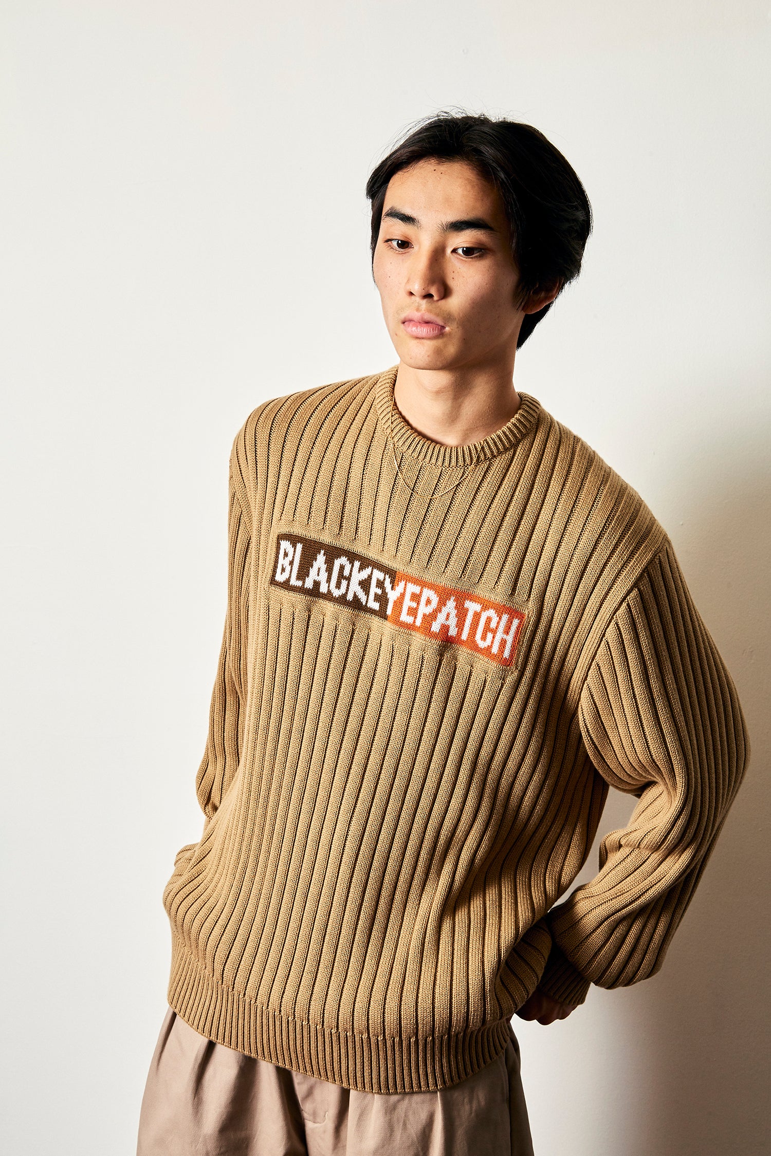 2-Tone Logo Knit Sweater, Beige