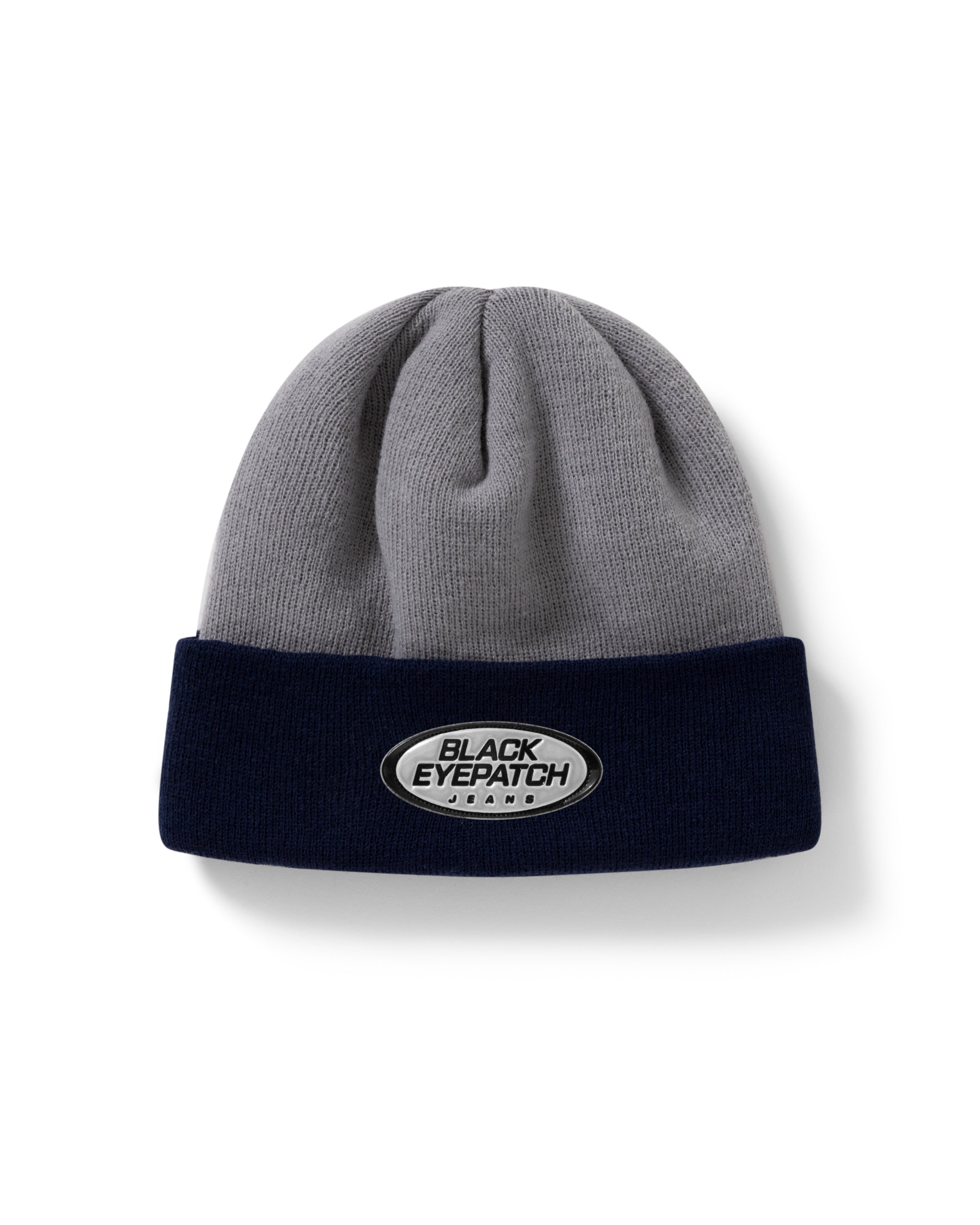 This beanie features a "BEP JEANS" logo patch, capturing the mood of the denim lines that were popular with US brands in the early 2000s.