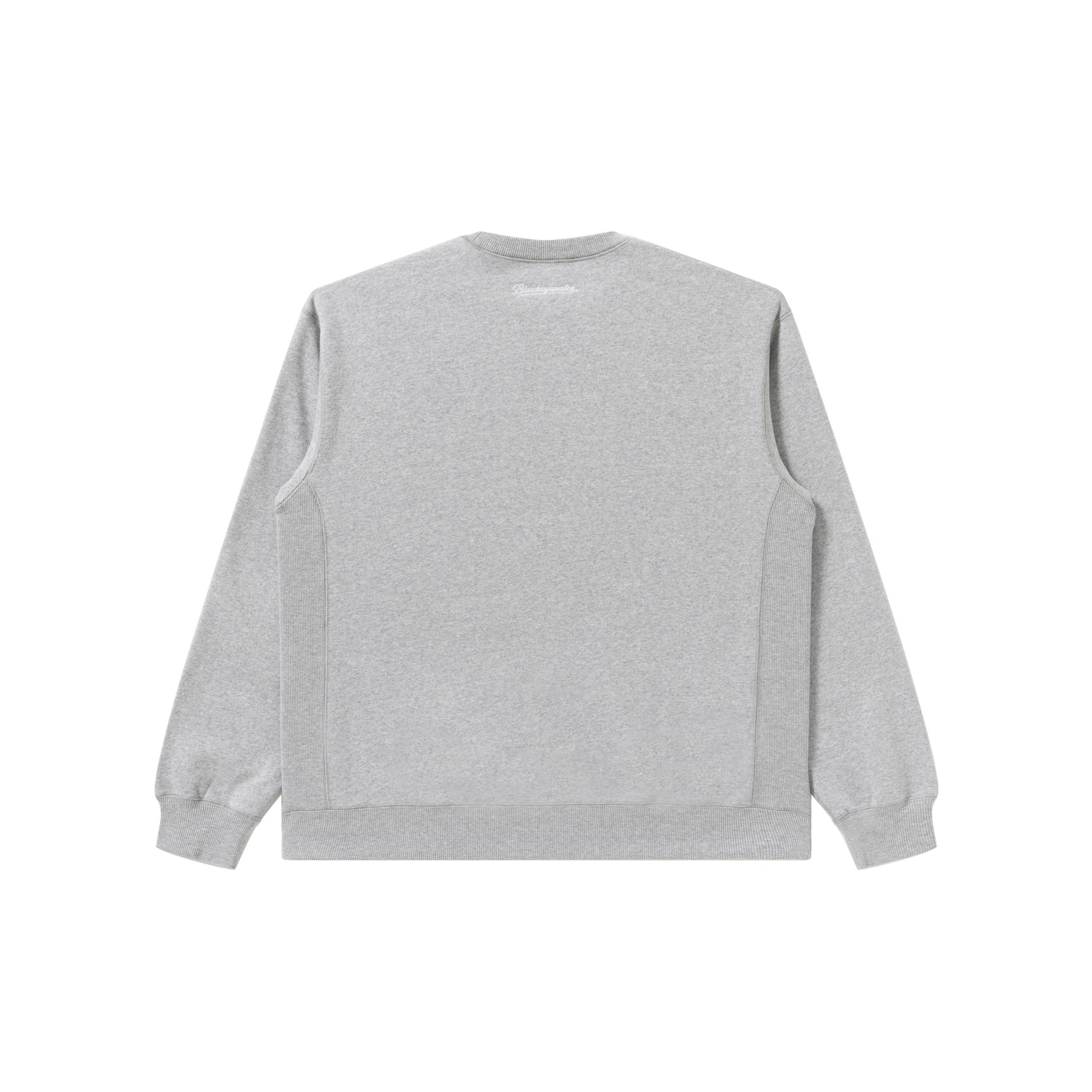 A crew neck sweatshirt printed with a college-style graphic inspired by sports culture.
