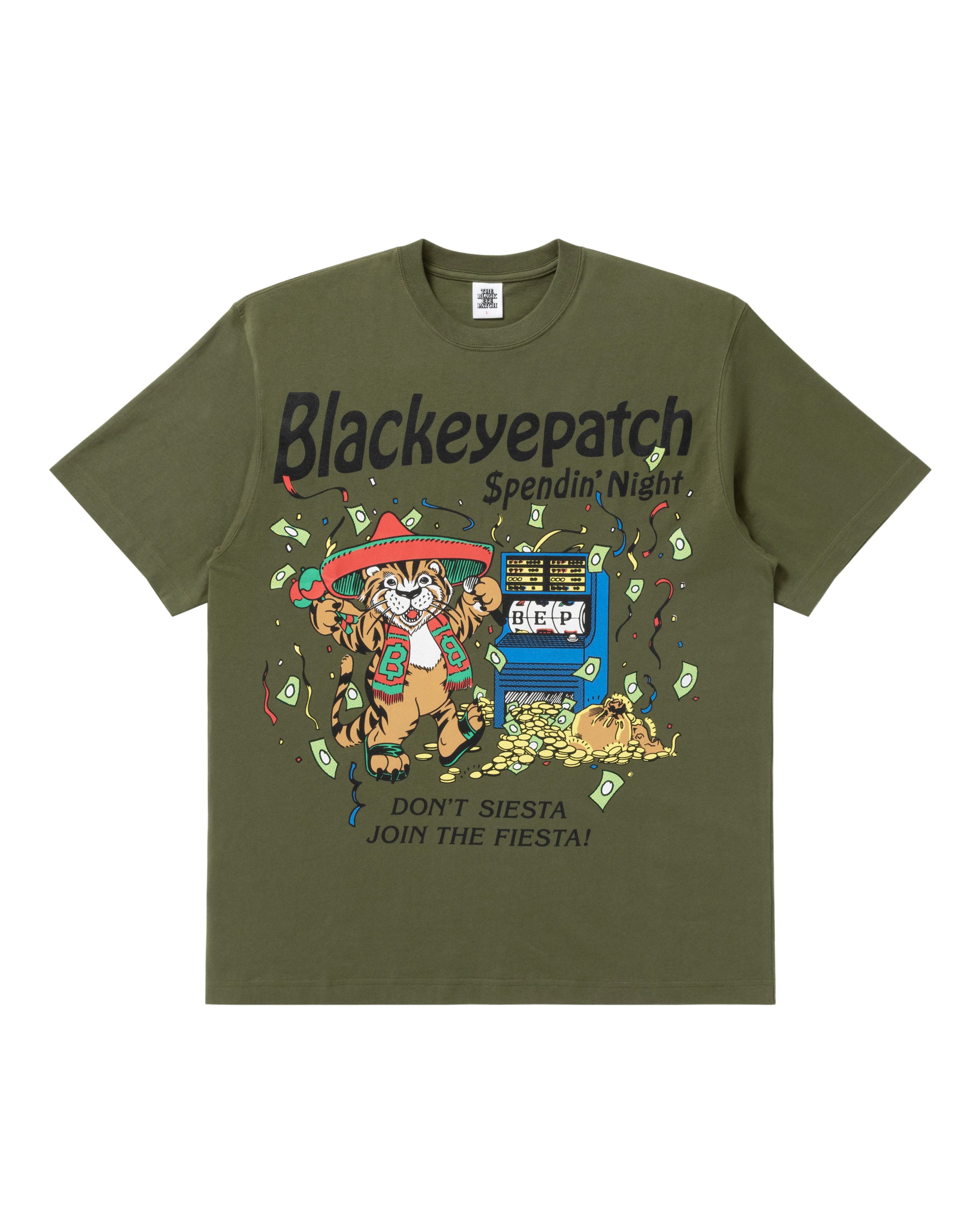 A souvenir-like S/S TEE with a casino-themed graphic printed on it.