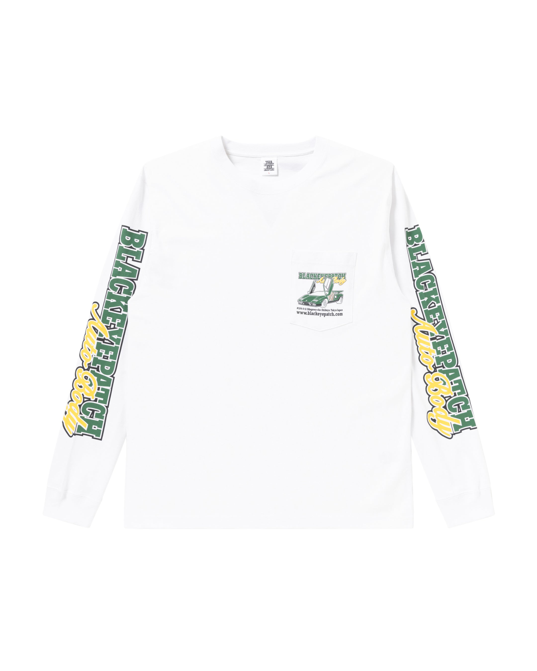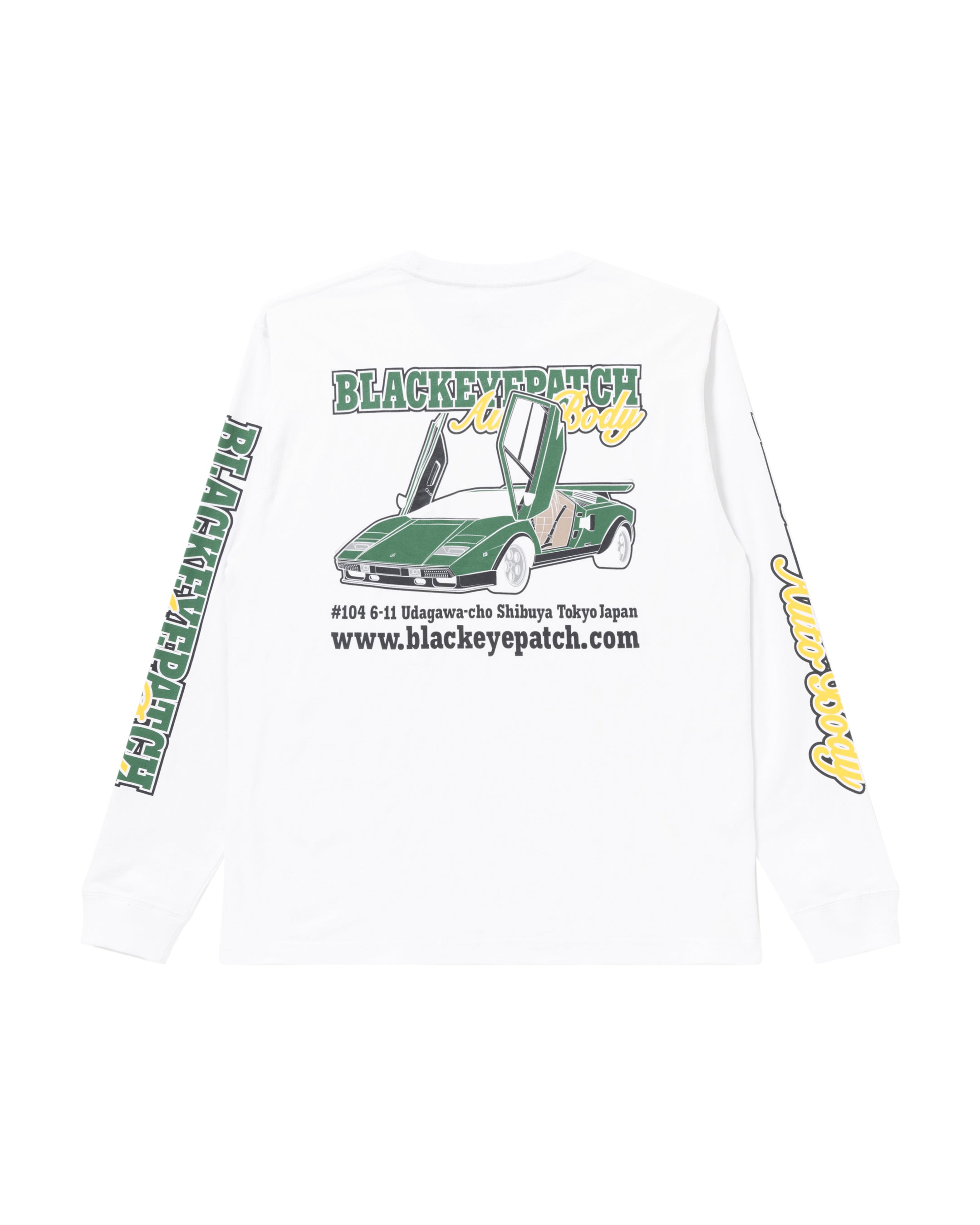 A L/ST shirt with a design inspired by a flyer for an American auto body shop, featuring a Lamborghini that catches the eye.