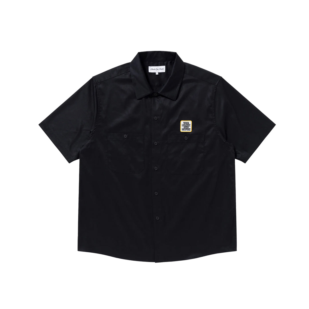 This special short-sleeved work shirt features a design printed on the back that looks like a sticker of BEP's iconic label logo, and a "OG LABEL" logo patch on the front chest.