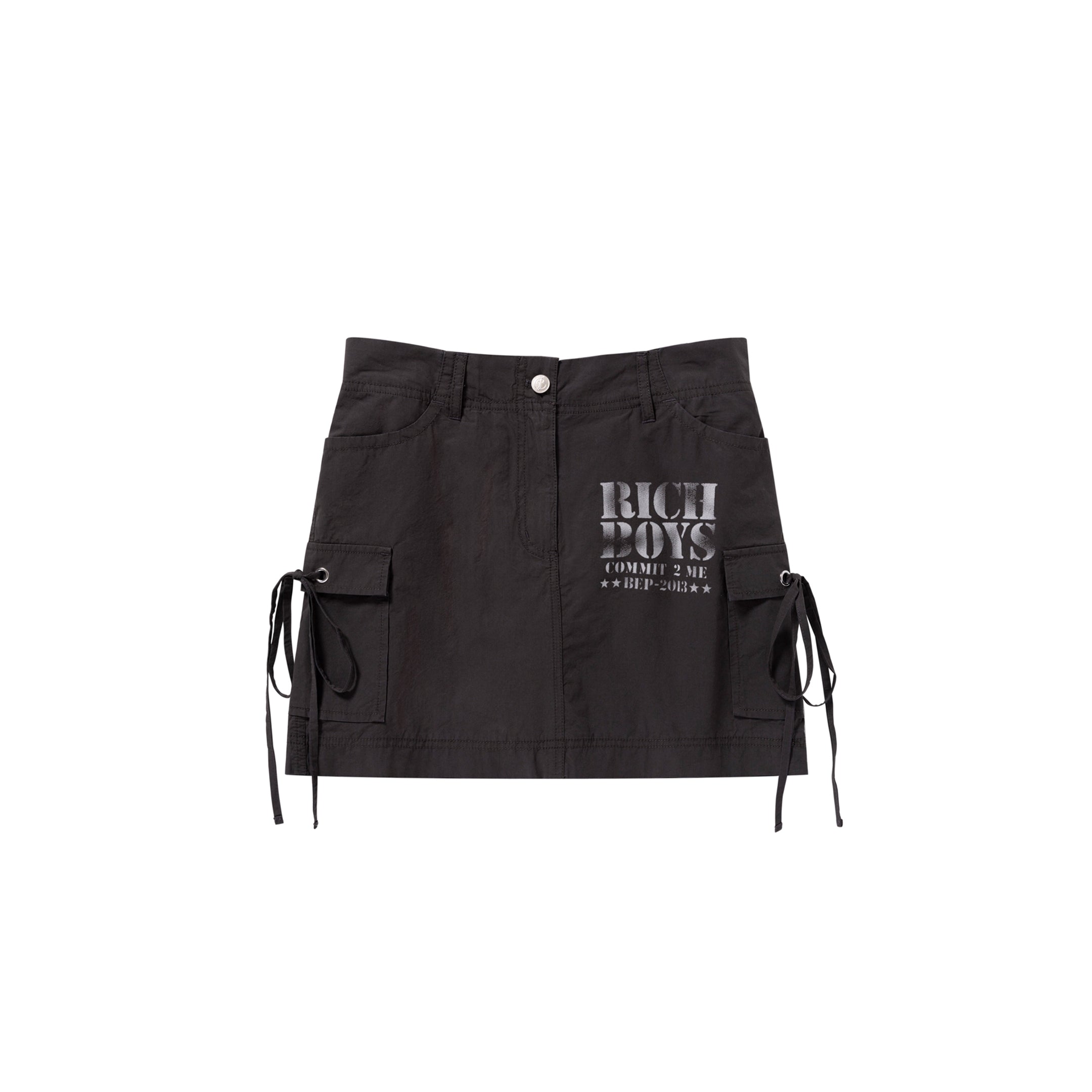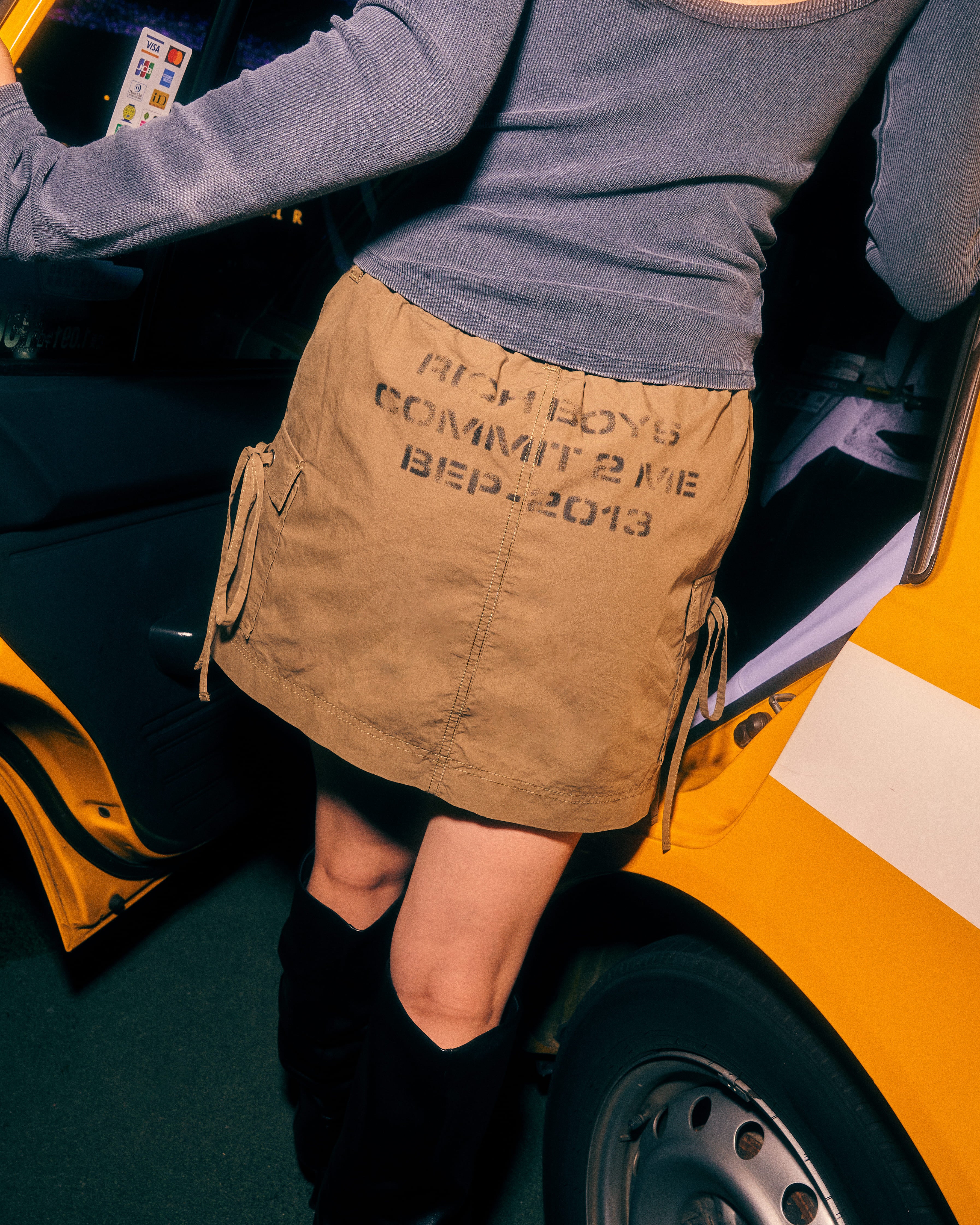 A military-inspired cotton poplin skirt with a stencil-like spray print.
