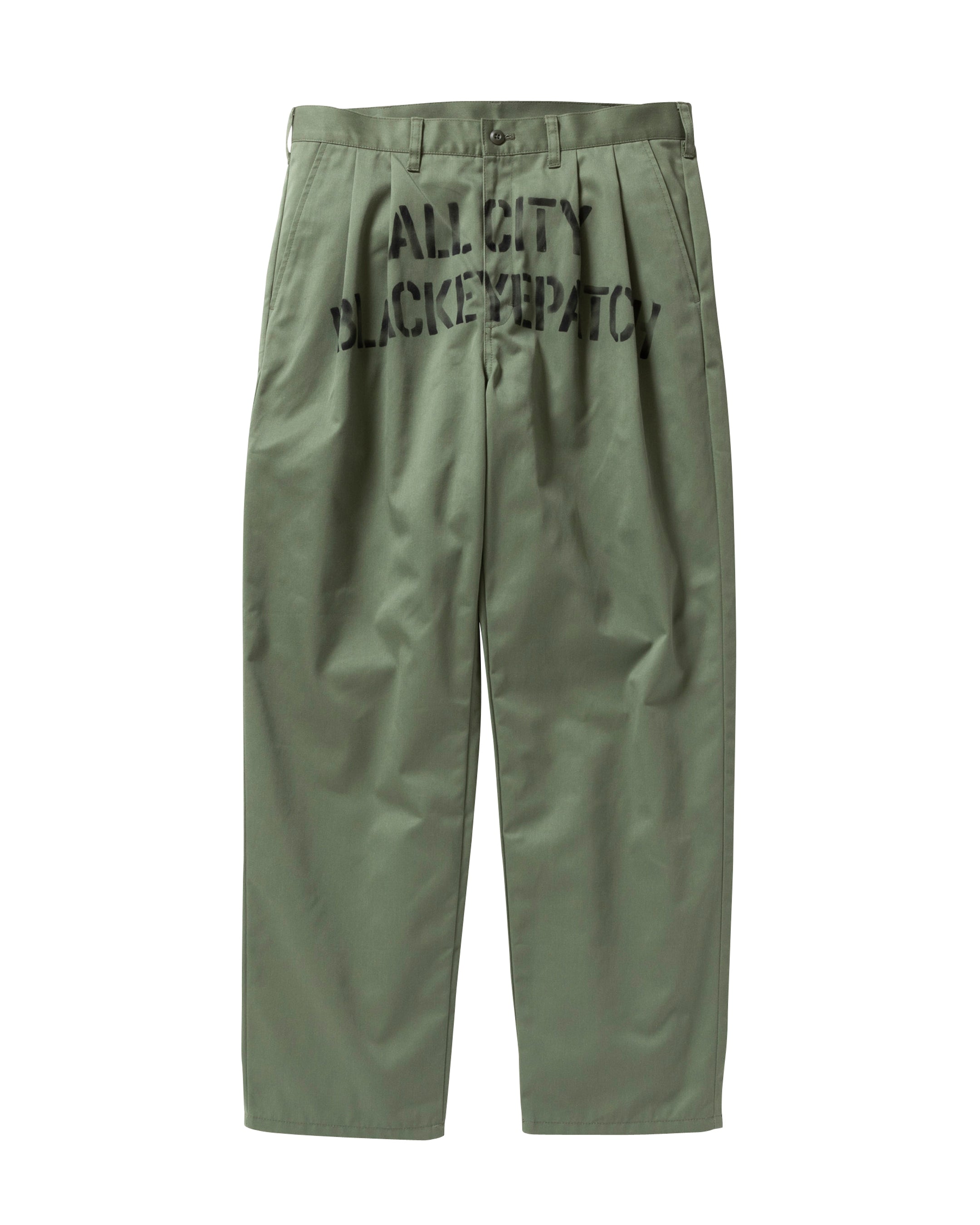フロントに "ALL CITY" とブランドネームのステンシルが施された 2タック入りの CHINO PANT。若干テーパードのかかるユッタリとしたシルエット。