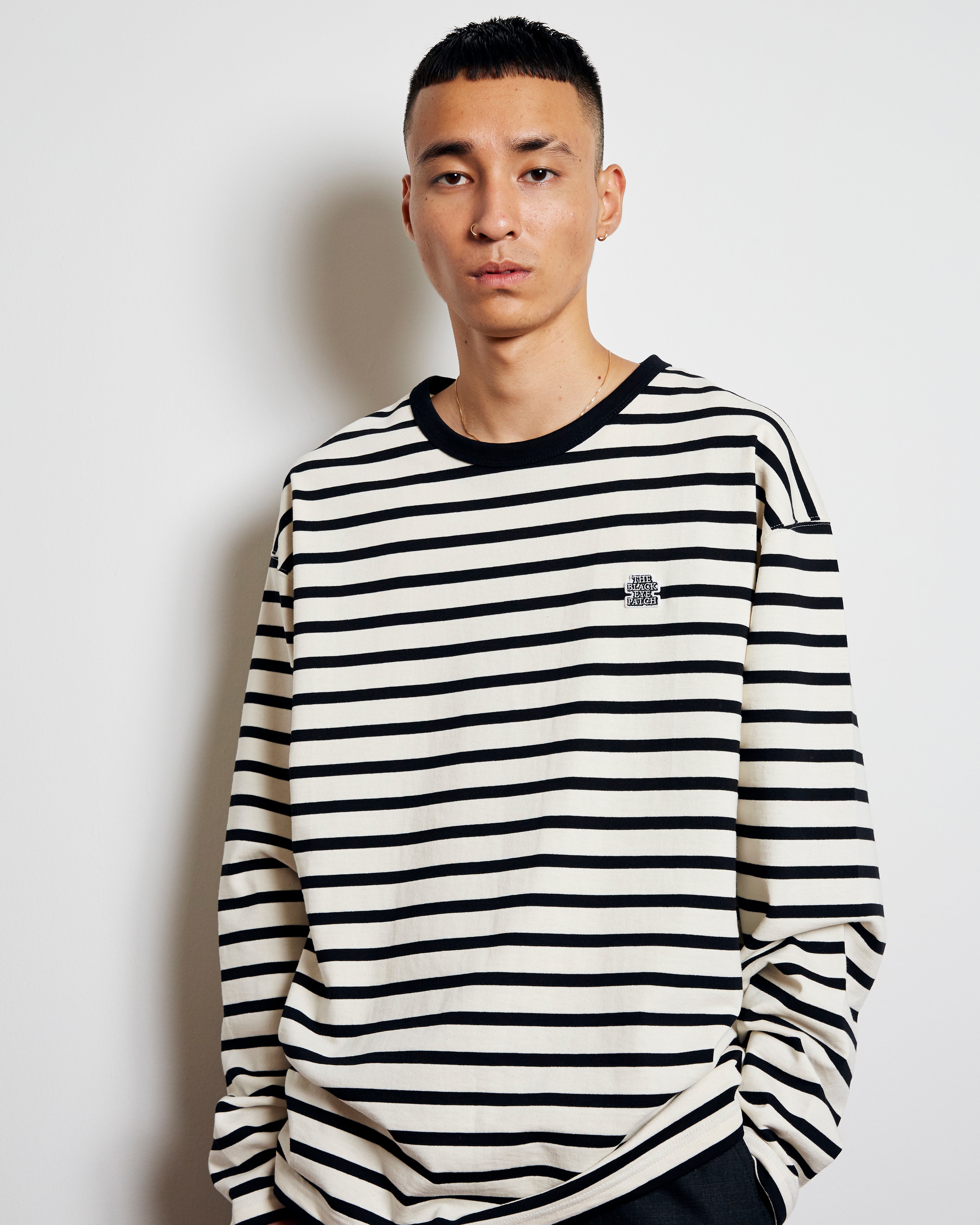 胸元に小さめの OG LABEL ロゴのパッチが付いたボーダータイプの L/S TEE。