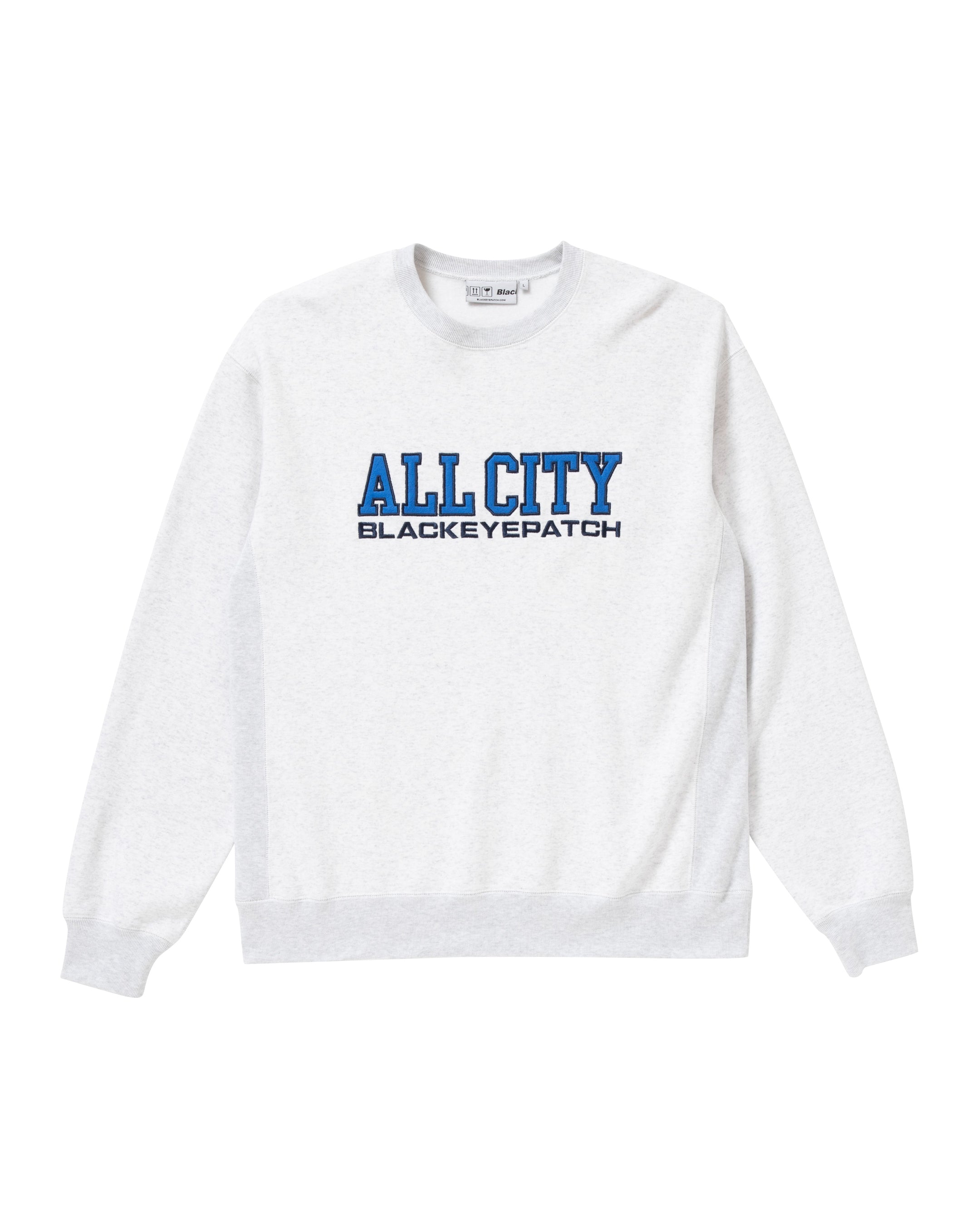 ブランドの背景にあるカルチャーから派生したフレーズ “ALL CITY” をフロントに大きく刺繍を載せた CREW SWEAT。スウェットは 12.5oz。