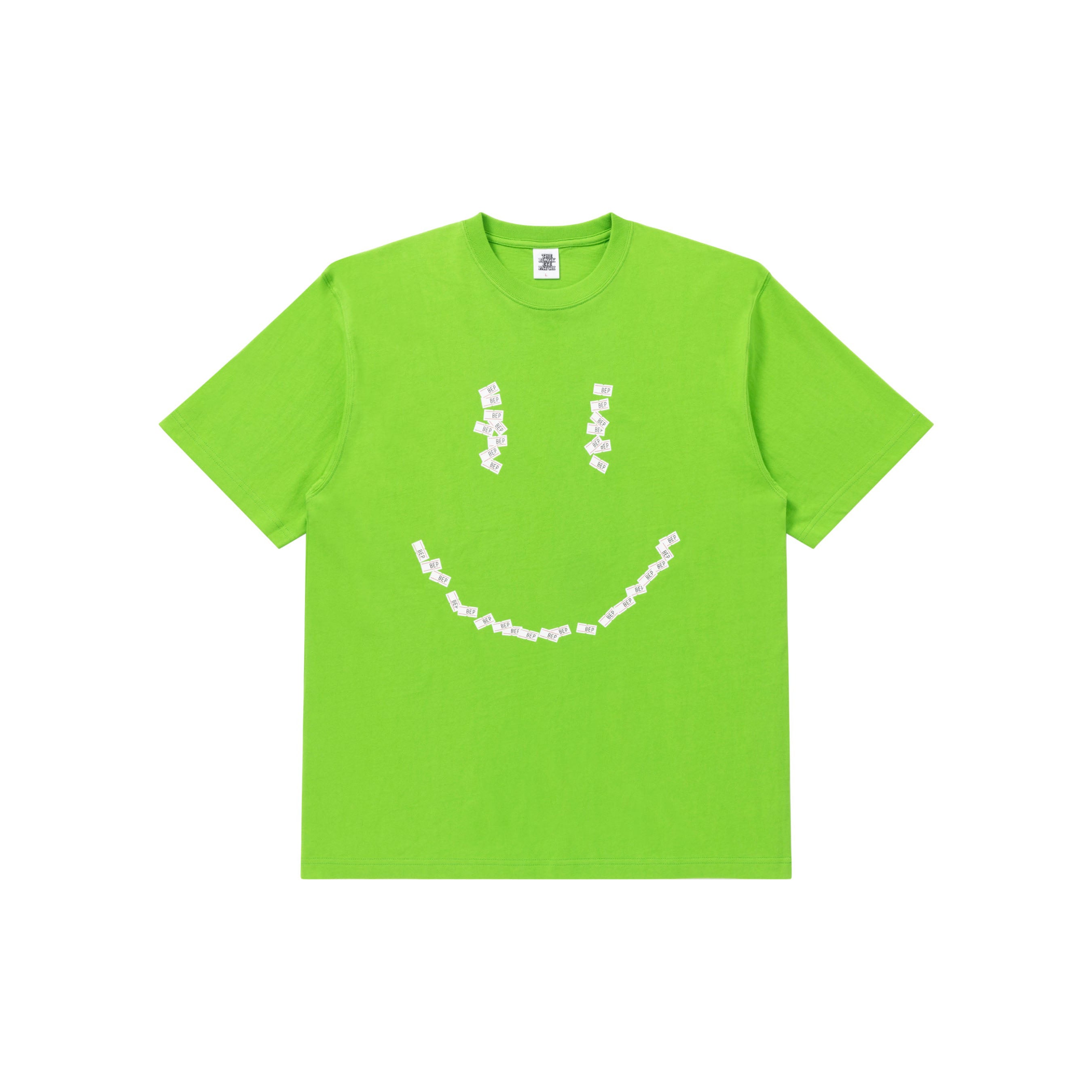 値札シールをモチーフとしたスマイリーフェイスのグラフィックをプリントした S/S TEE。