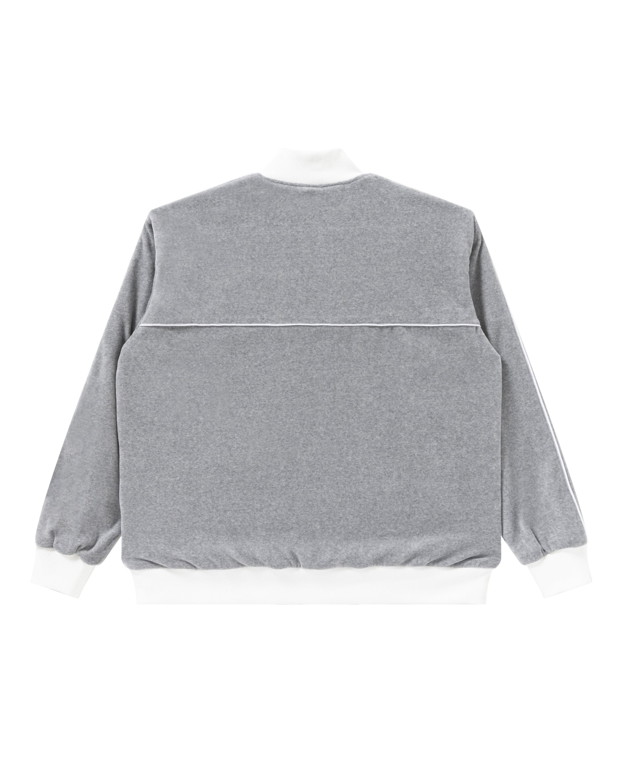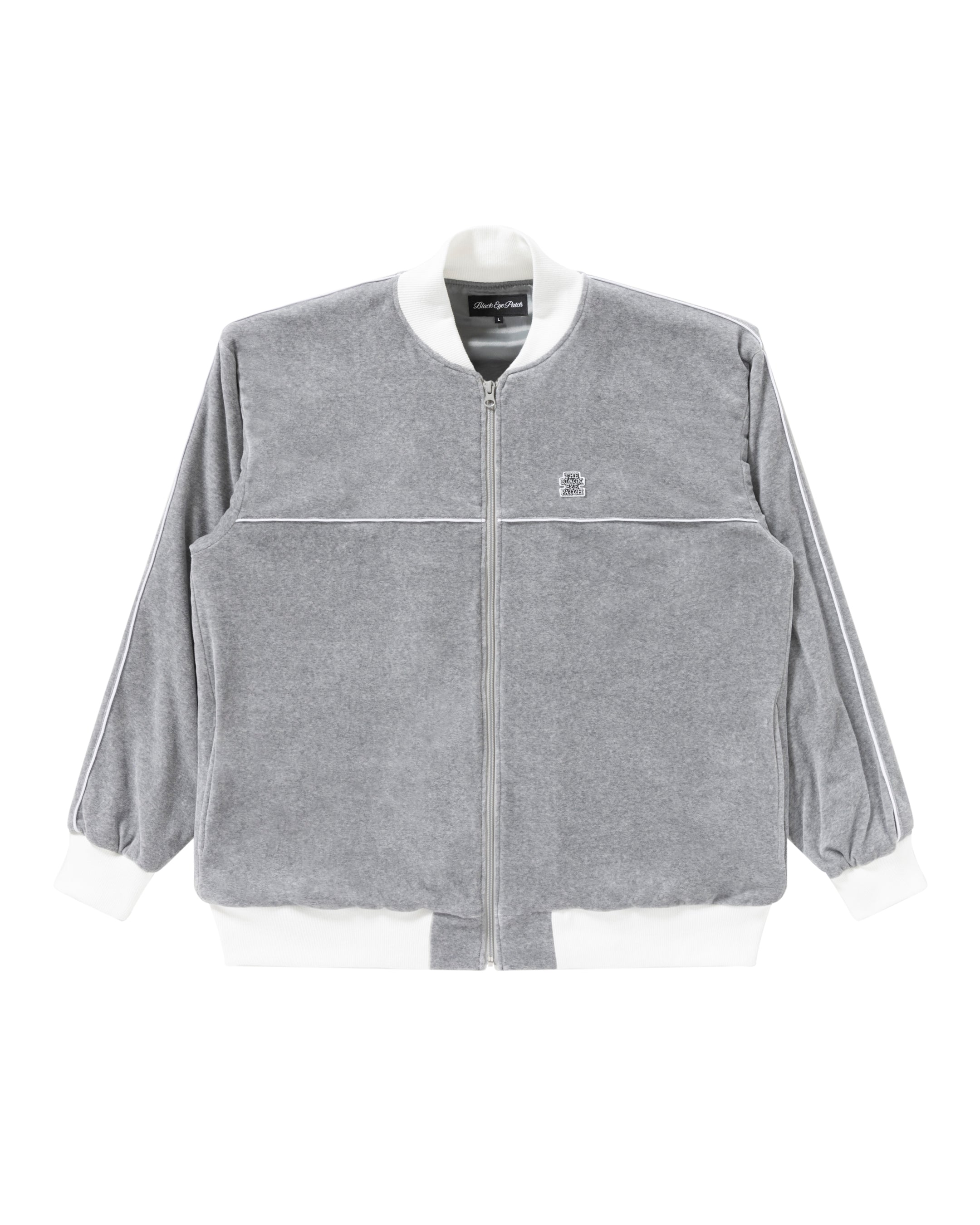 フロントとスリーブのパイピングがアクセントのベロア素材を使用したトラックジャケット。ポイントで OG LABEL ロゴのワッペンが入る。