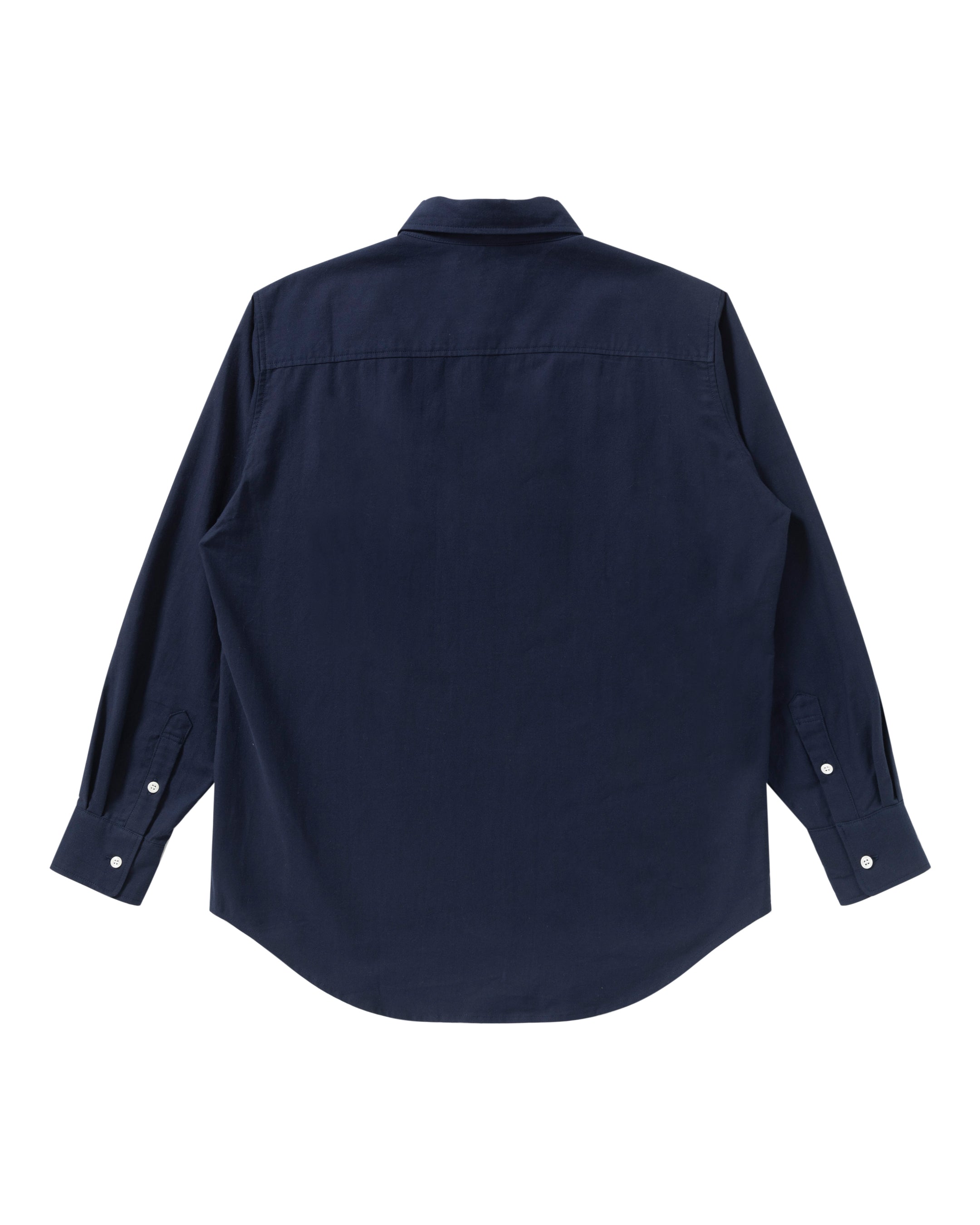 "B" のエンブレムロゴをチェストポケットに刺繍を施した OXFORD 生地のボタンダウンシャツ。カジュアルなカラバリで前立仕様の仕上がり。