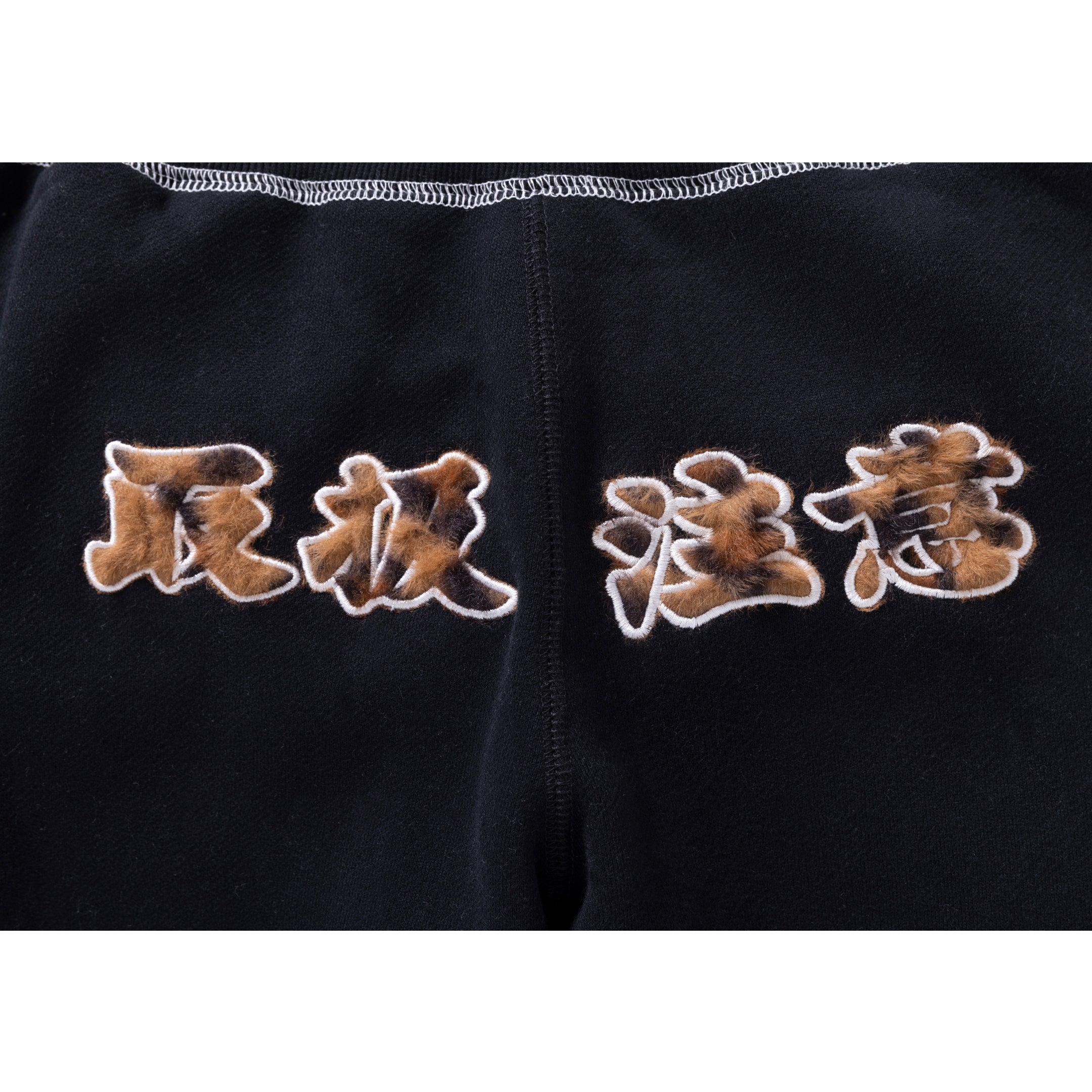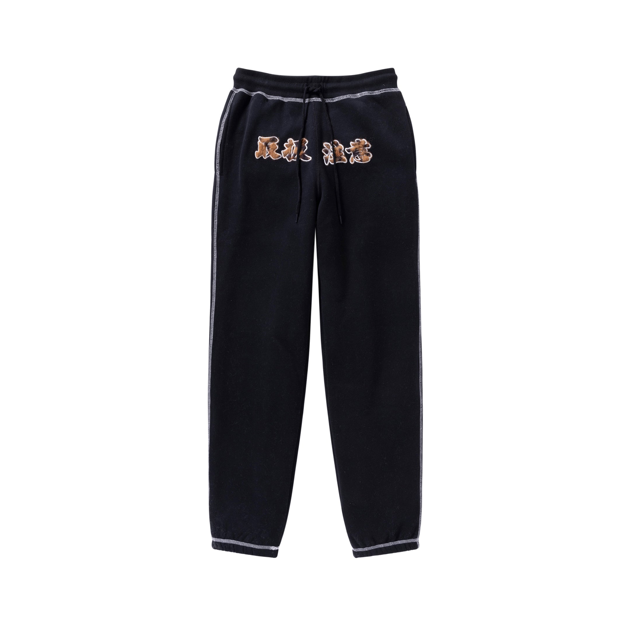 HWC FUR PATCHED DOUBLE STITCH SWEAT PANTS BLACK